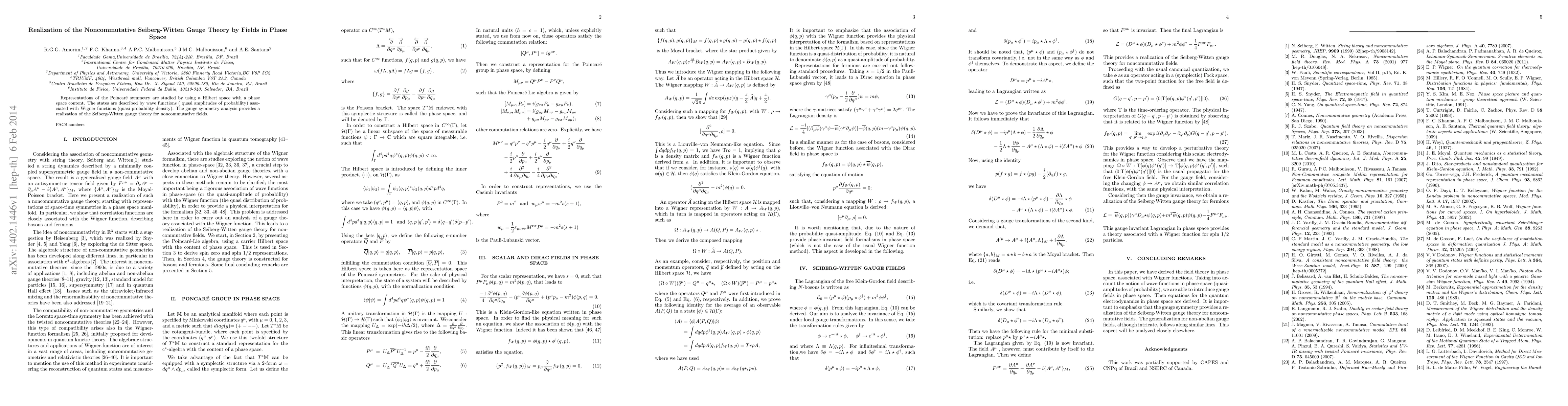 Representations of the Poincar\'{e} symmetry are studied by using a Hilbert space with a phase space content. The states are described by wave functions ( quasi amplitudes of probability) associated with Wigner functions (quasi probability density). The gauge symmetry analysis provides a realization of the Seiberg-Witten gauge theory for noncommutative fields.