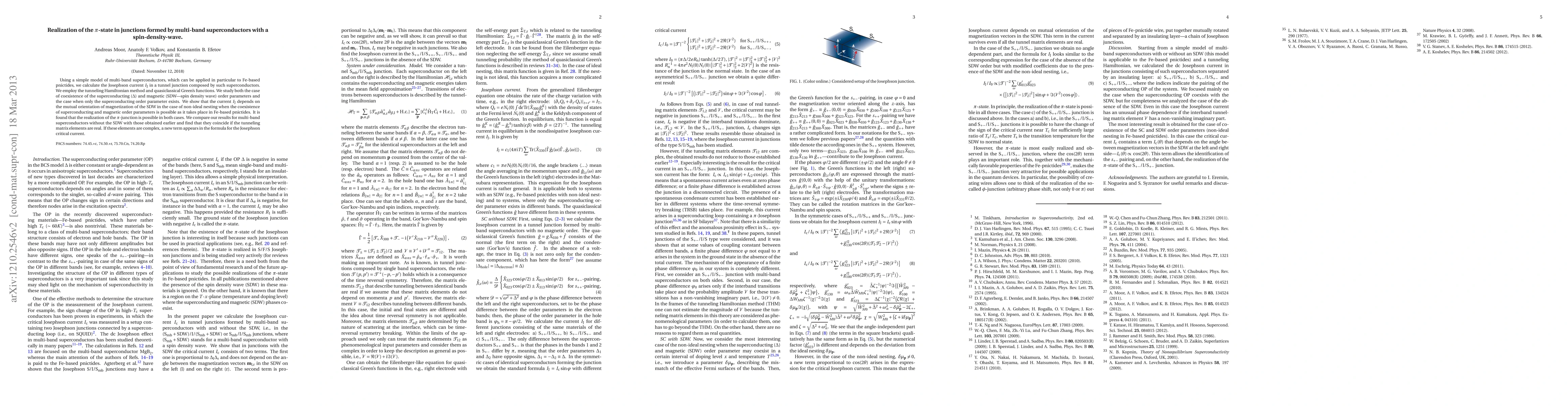 Using a simple model of multi-band superconductors, which can be applied in particular to Fe\nobreakdash-based pnictides, we calculate the Josephson current $I_{\text{J}}$ in a tunnel junction composed by such superconductors. We employ the tunneling Hamiltonian method and quasiclassical Green's functions. We study both the case of coexistence of the superconducting ($\Delta $) and magnetic (SDW---spin density wave) order parameters and the case when only the superconducting order parameter exists. We show that the current $I_{\text{J}}$ depends on the mutual orientation of magnetization of the SDW in the case of non-ideal nesting when the coexistence of superconducting and magnetic order parameters is possible as it takes place in Fe\nobreakdash-based pnictides. It is found that the realization of the $\pi$\nobreakdash-junction is possible in both cases. We compare our results for multi-band superconductors without the SDW with those obtained earlier and find that they coincide if the tunneling matrix elements are real. If these elements are complex, a new term appears in the formula for the Josephson critical current.