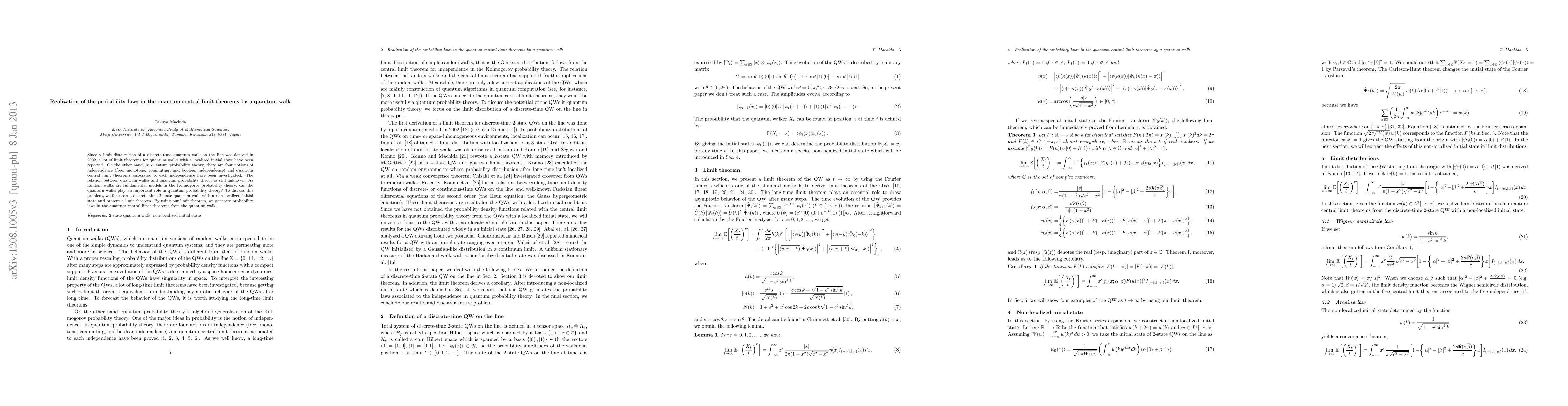 This paper explores the connection between quantum walks and quantum probability theory by deriving a limit theorem for a discrete-time 2-state quantum walk with a non-localized initial state. The authors demonstrate how this limit theorem can generate probability laws in quantum central limit theorems, suggesting a potential role for quantum walks in quantum probability theory.