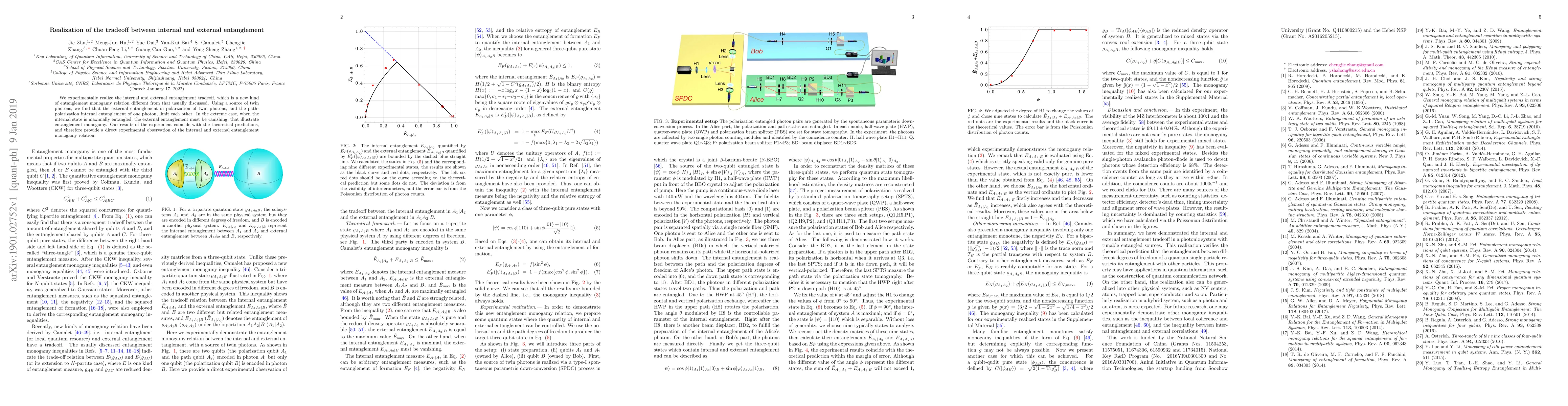 This paper experimentally demonstrates a novel entanglement monogamy relation between internal and external entanglement using twin photons. The study shows that the external polarization entanglement and the internal path-polarization entanglement of one photon are mutually limiting, providing direct experimental evidence for this new entanglement tradeoff.