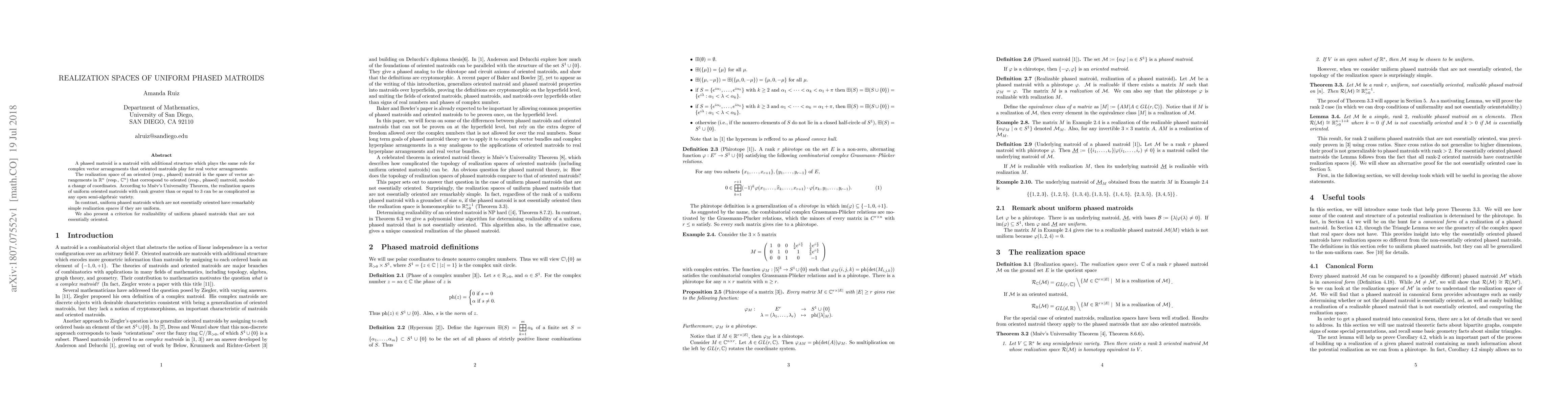 Summary: This paper explores the realization spaces of uniform phased matroids, showing that they are significantly simpler compared to uniform oriented matroids, particularly when they are not essentially oriented. It also provides a criterion for the realizability of such matroids.