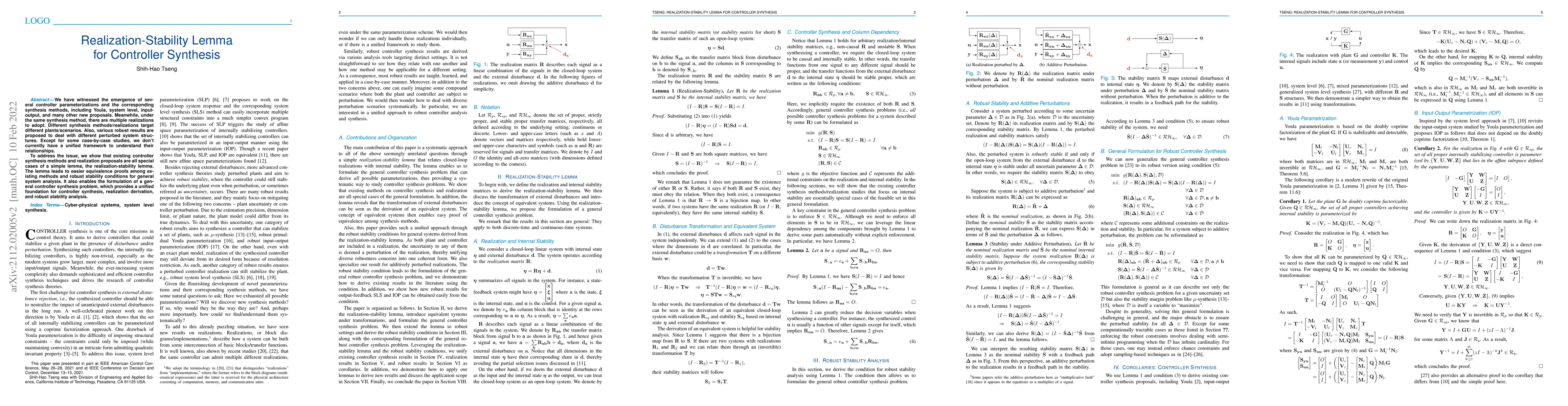 This paper presents the realization-stability lemma, which unifies various controller synthesis methods and realizations under a single framework. It provides a general foundation for controller synthesis, realization derivation, and robust stability analysis, facilitating easier equivalence proofs among different synthesis methods.