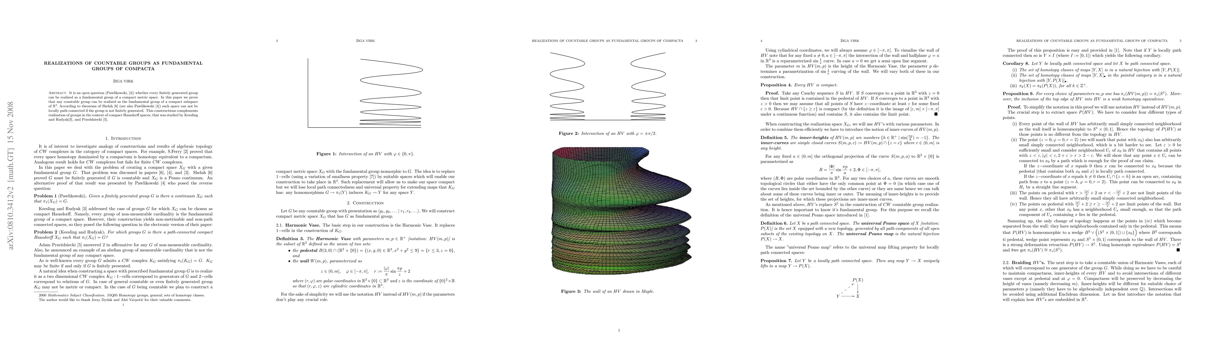 This paper proves that countable groups can be realized as fundamental groups of compact subspaces in 4D Euclidean space, complementing earlier results on locally path-connected spaces.