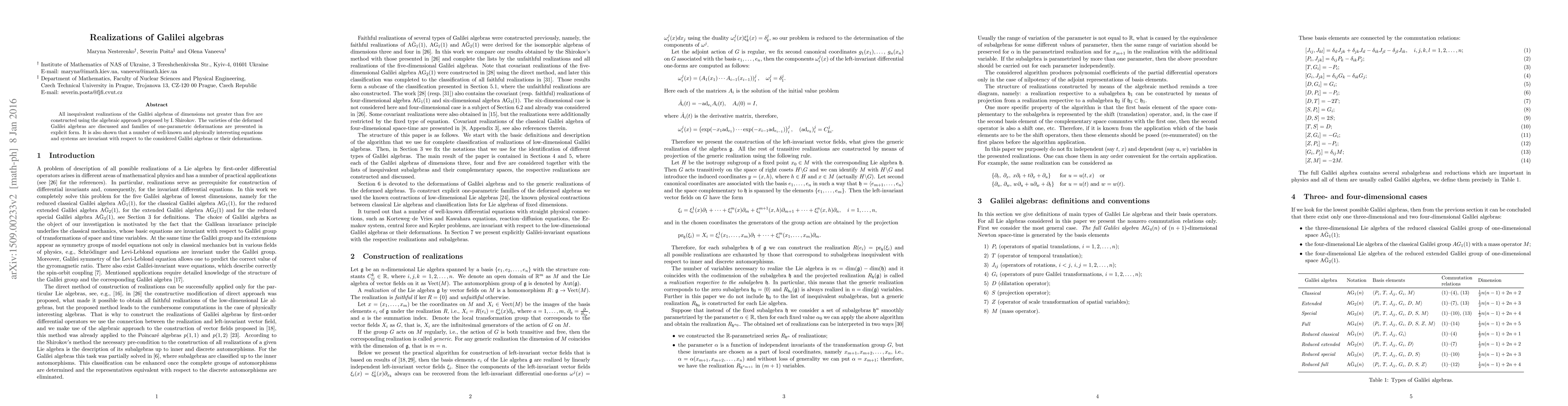 Researchers constructed inequivalent realizations of Galilei algebras using a proposed algebraic approach, leading to new insights into physically interesting equations and systems.