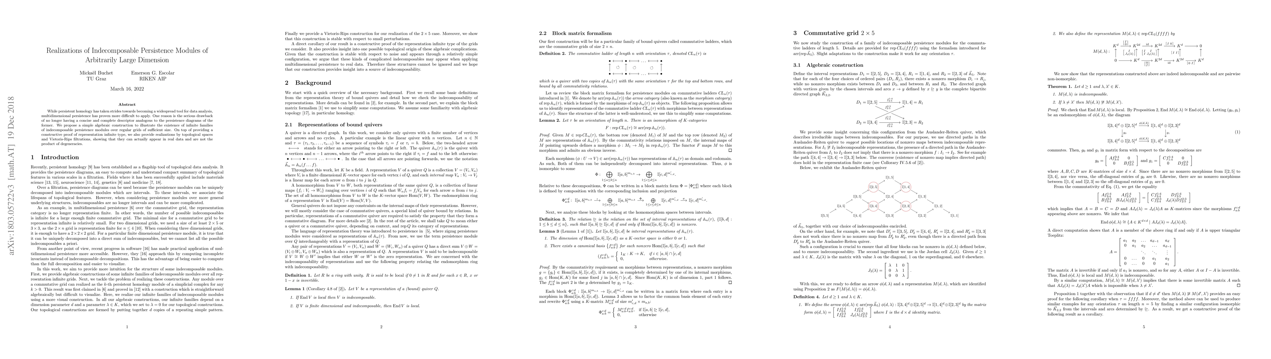 While persistent homology has taken strides towards becoming a wide-spread tool for data analysis, multidimensional persistence has proven more difficult to apply. One reason is the serious drawback of no longer having a concise and complete descriptor analogous to the persistence diagrams of the former. We propose a simple algebraic construction to illustrate the existence of infinite families of indecomposable persistence modules over regular grids of sufficient size. On top of providing a constructive proof of representation infinite type, we also provide realizations by topological spaces and Vietoris-Rips filtrations, showing that they can actually appear in real data and are not the product of degeneracies.