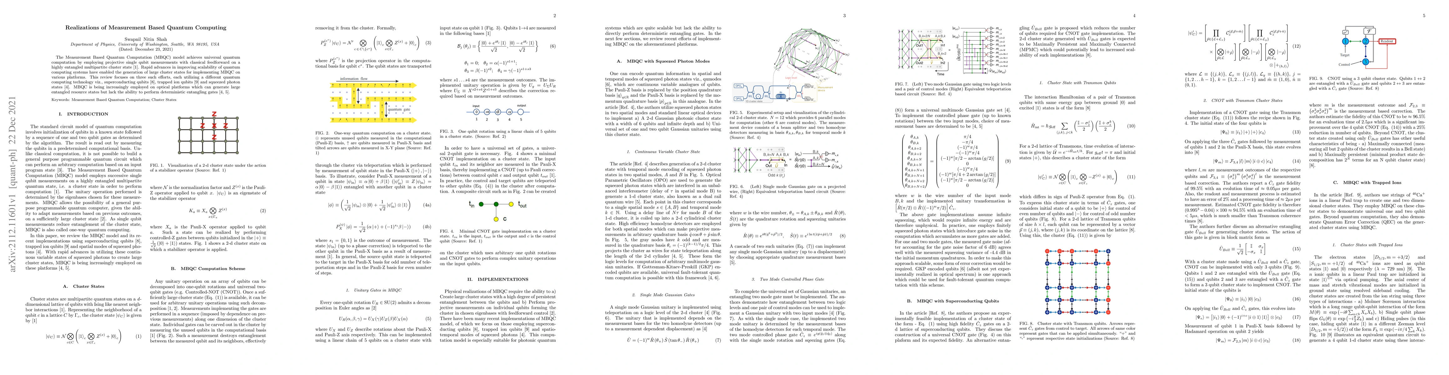 Researchers review advancements in Measurement Based Quantum Computing (MBQC) using different quantum computing technologies, including superconducting qubits, trapped ion qubits, squeezed photon states, and optical platforms.