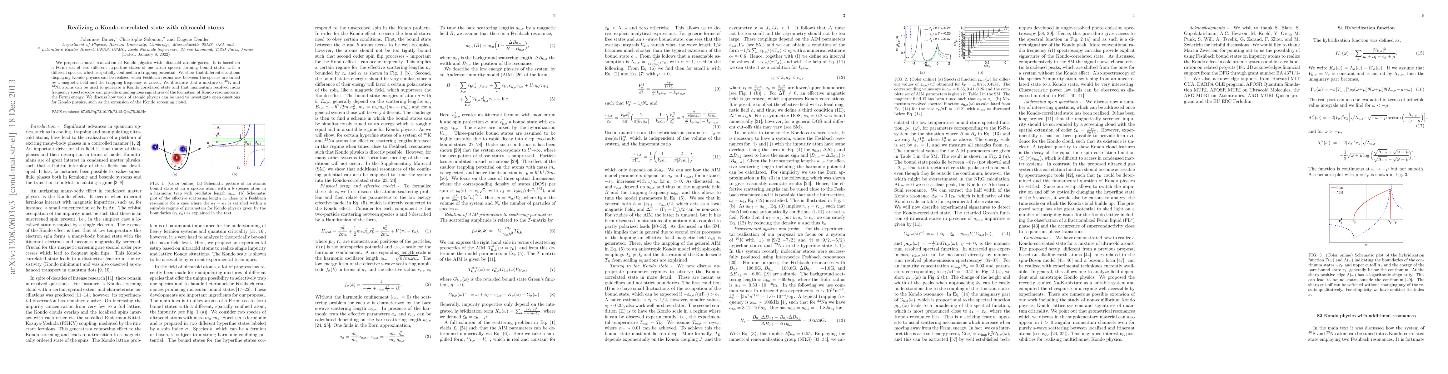 We propose a novel realization of Kondo physics with ultracold atomic gases. It is based on a Fermi sea of two different hyperfine states of one atom species forming bound states with a different species, which is spatially confined in a trapping potential. We show that different situations displaying Kondo physics can be realized when Feshbach resonances between the species are tuned by a magnetic field and the trapping frequency is varied. We illustrate that a mixture of ${}^{40}$K and ${}^{23}$Na atoms can be used to generate a Kondo correlated state and that momentum resolved radio frequency spectroscopy can provide unambiguous signatures of the formation of Kondo resonances at the Fermi energy. We discuss how tools of atomic physics can be used to investigate open questions for Kondo physics, such as the extension of the Kondo screening cloud.