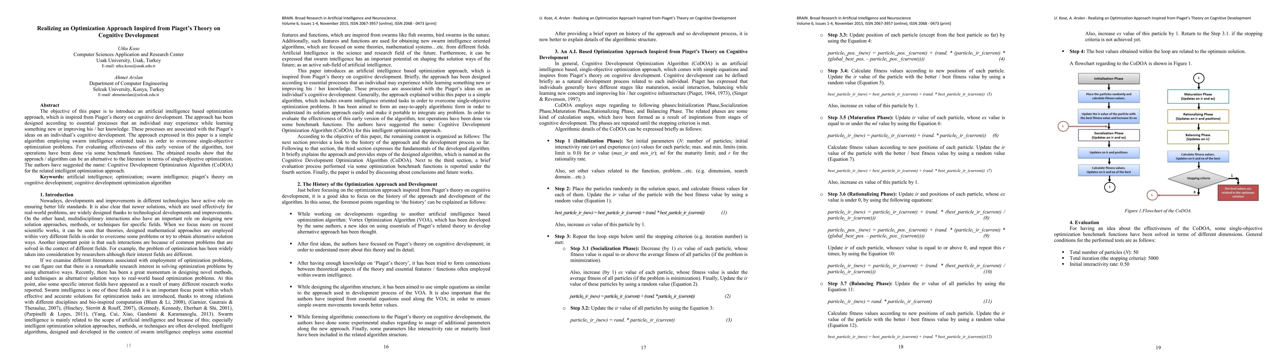 The objective of this paper is to introduce an artificial intelligence based optimization approach, which is inspired from Piagets theory on cognitive development. The approach has been designed according to essential processes that an individual may experience while learning something new or improving his / her knowledge. These processes are associated with the Piagets ideas on an individuals cognitive development. The approach expressed in this paper is a simple algorithm employing swarm intelligence oriented tasks in order to overcome single-objective optimization problems. For evaluating effectiveness of this early version of the algorithm, test operations have been done via some benchmark functions. The obtained results show that the approach / algorithm can be an alternative to the literature in terms of single-objective optimization. The authors have suggested the name: Cognitive Development Optimization Algorithm (CoDOA) for the related intelligent optimization approach.