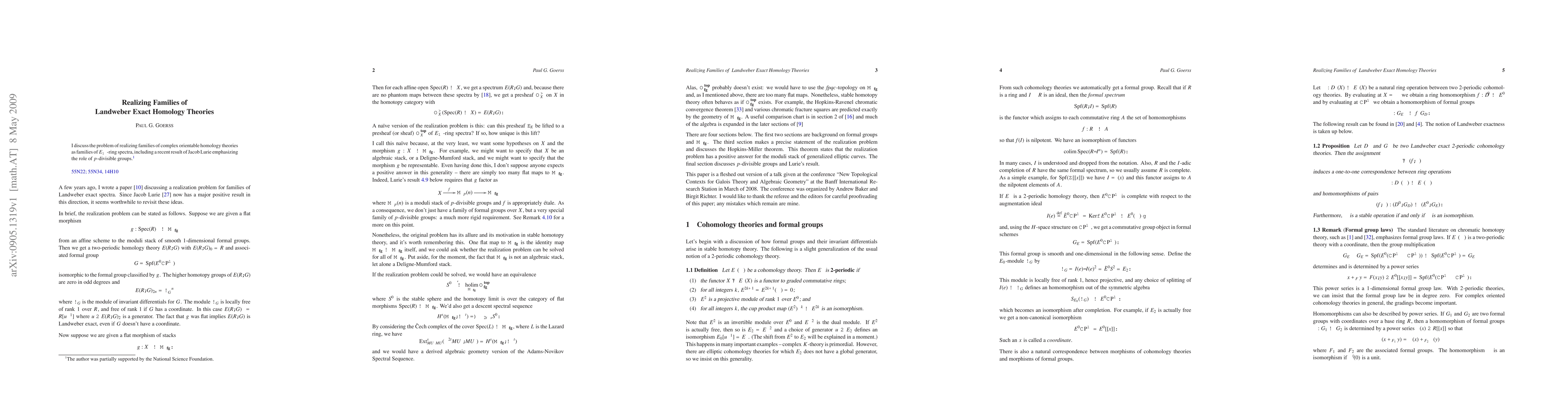 Summary: This paper explores the construction of complex orientable homology theories as commutative ring spectra, highlighting recent advancements by Jacob Lurie that utilize p-divisible groups to achieve Landweber exactness.