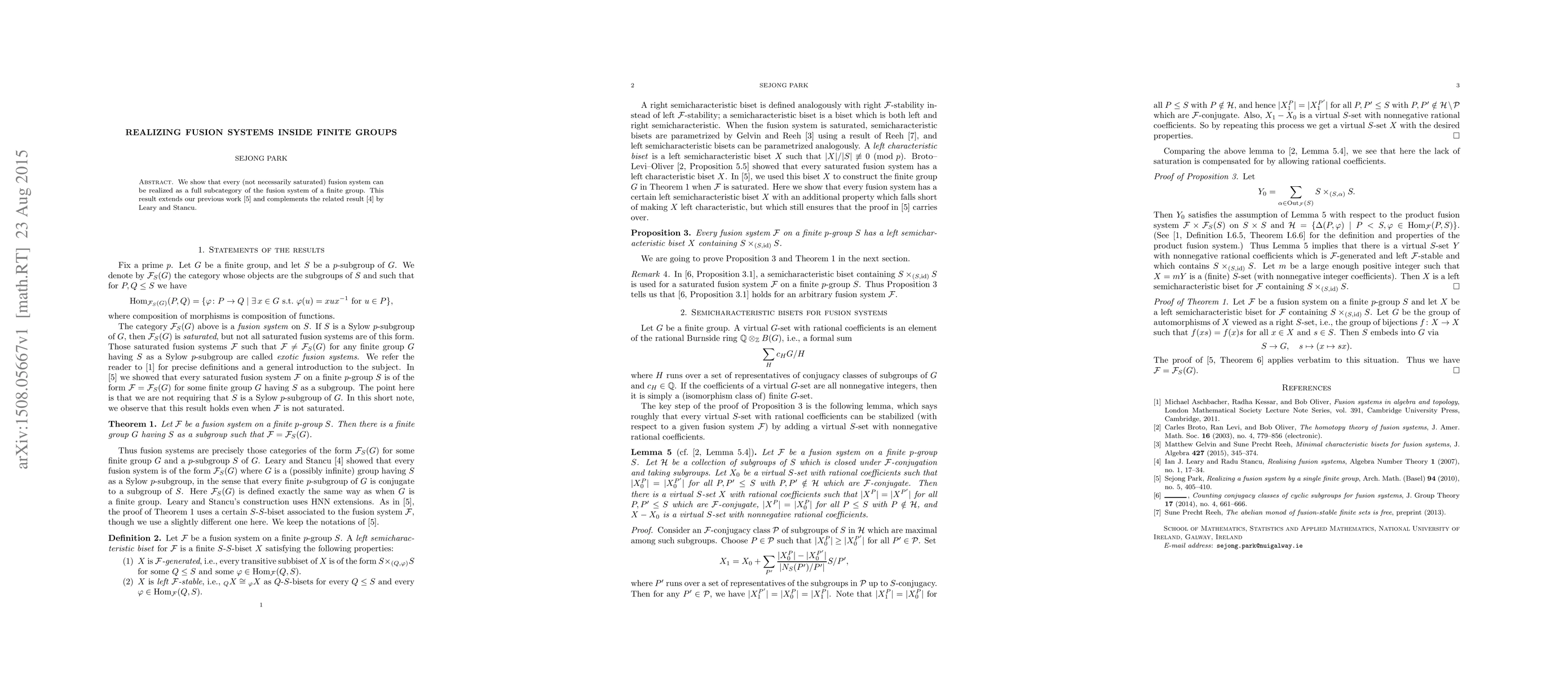 We show that every (not necessarily saturated) fusion system can be realized as a full subcategory of the fusion system of a finite group. This result extends our previous work \cite{Park2010} and complements the related result \cite{LearyStancu2007} by Leary and Stancu.