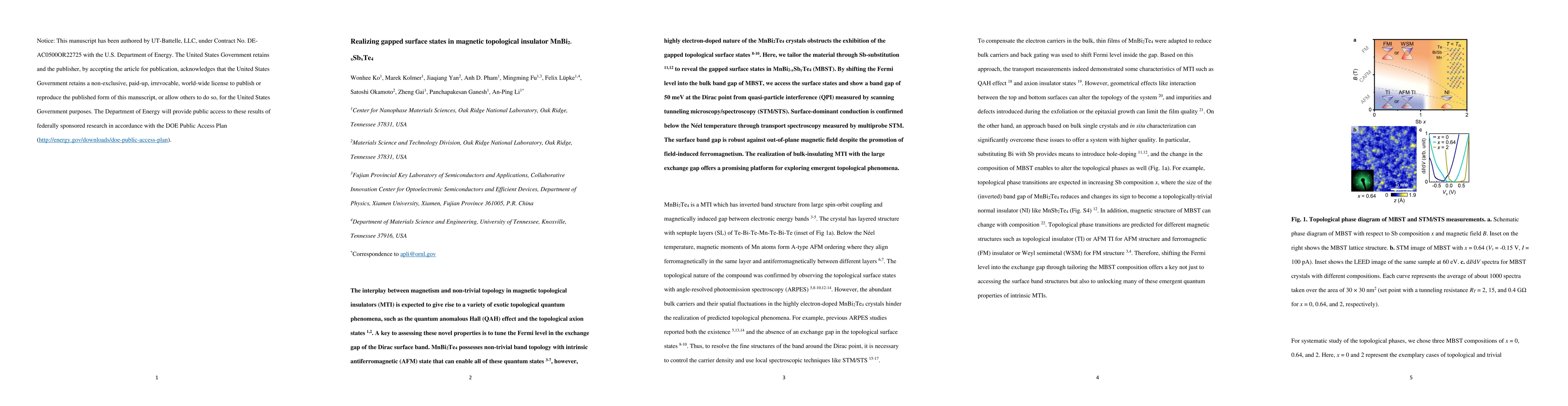 Researchers created a new material, MnBi2-xSbxTe4, which reveals gapped surface states in magnetic topological insulators, offering a platform for studying exotic quantum phenomena.
