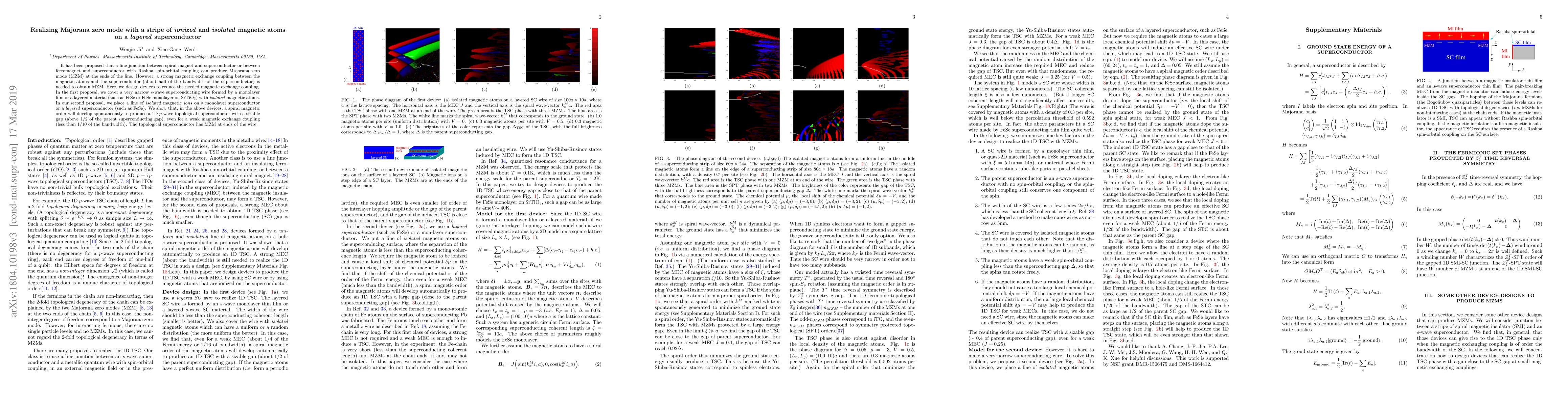 Researchers designed devices to create a 1D topological superconductor with Majorana zero mode at its ends, using isolated magnetic ions on a layered superconductor, achieving a significant gap with weak exchange coupling.