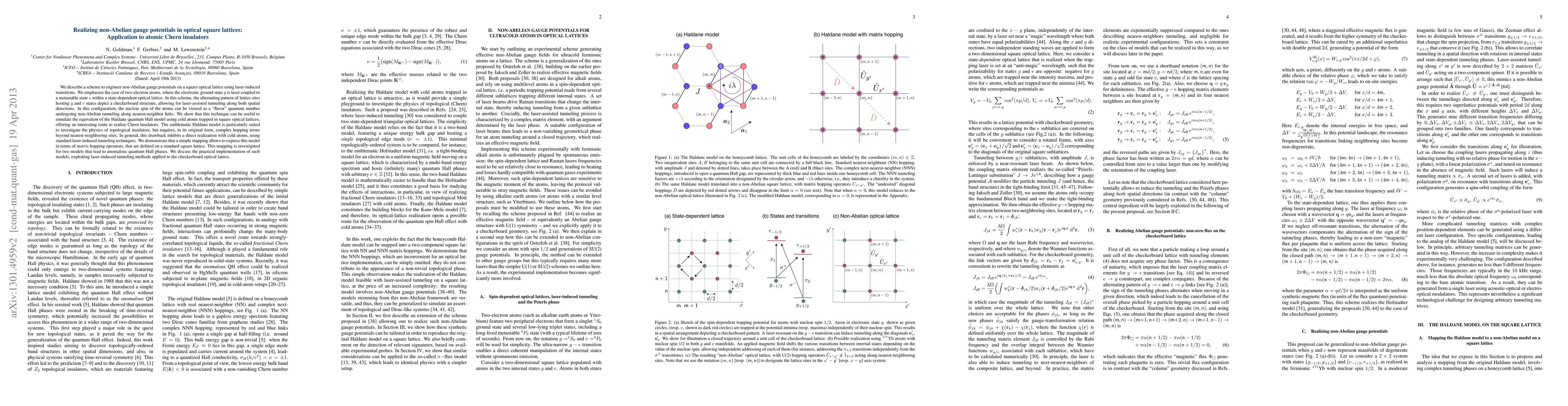This paper proposes a method to engineer non-Abelian gauge potentials in optical square lattices through laser-induced transitions, specifically for two-electron atoms. The technique allows for simulating the Haldane quantum Hall model, facilitating the realization of atomic Chern insulators, despite the model's original complex hopping requirements.