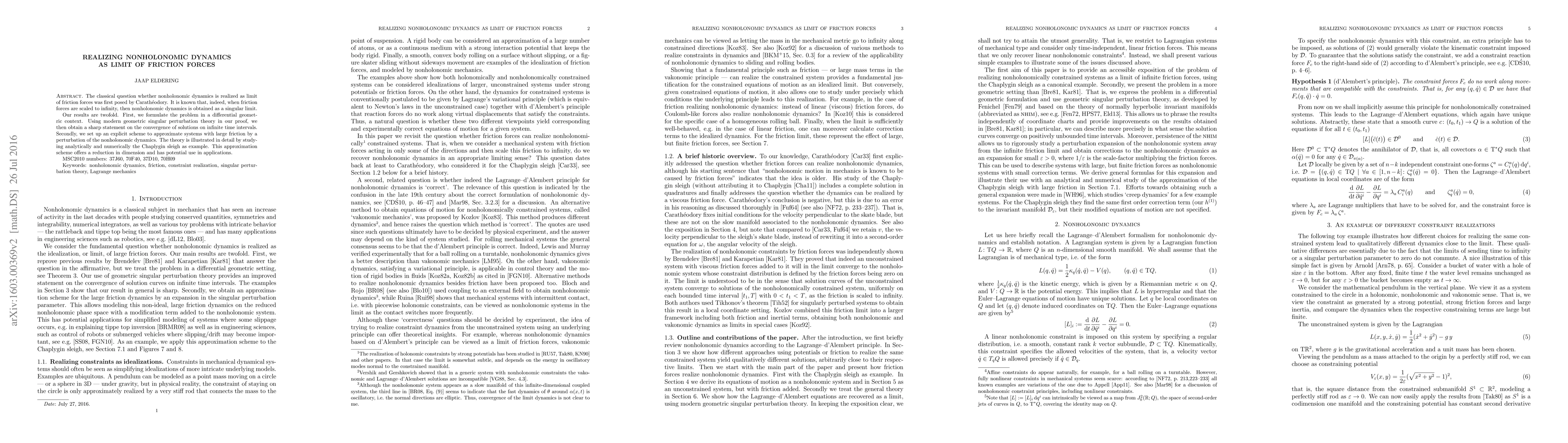 Research shows that nonholonomic dynamics can be approximated as a limit of friction forces when scaled to infinity. This is achieved through a differential geometric approach and an explicit scheme for systems with large friction.
