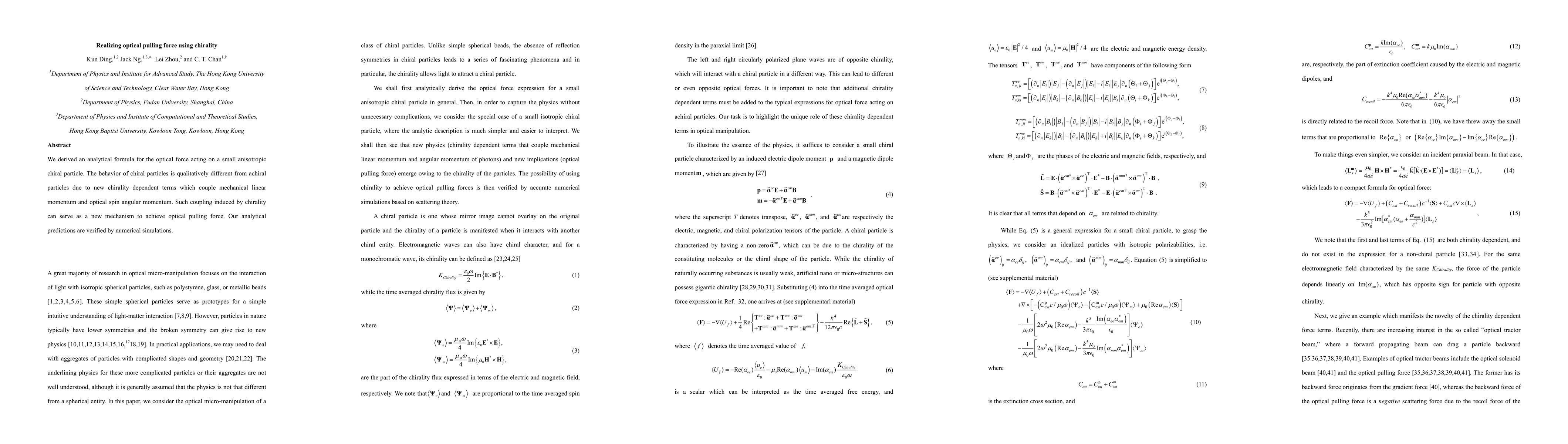 This work introduces a new mechanism for achieving optical pulling force using chirality, which could have applications in manipulating microscopic particles and structures.