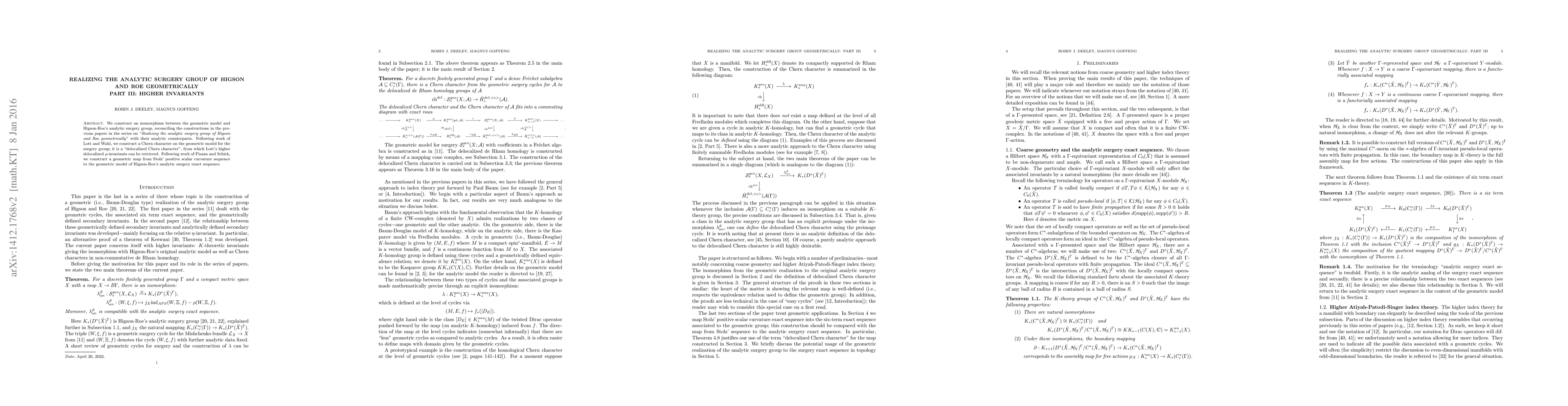 This paper constructs an isomorphism between a geometric model and Higson-Roe's analytic surgery group, aligning previous geometric constructions with their analytic counterparts. It also introduces a delocalized Chern character and higher $\rho$-invariants, linking geometric and analytic invariants in the study of positive scalar curvature.