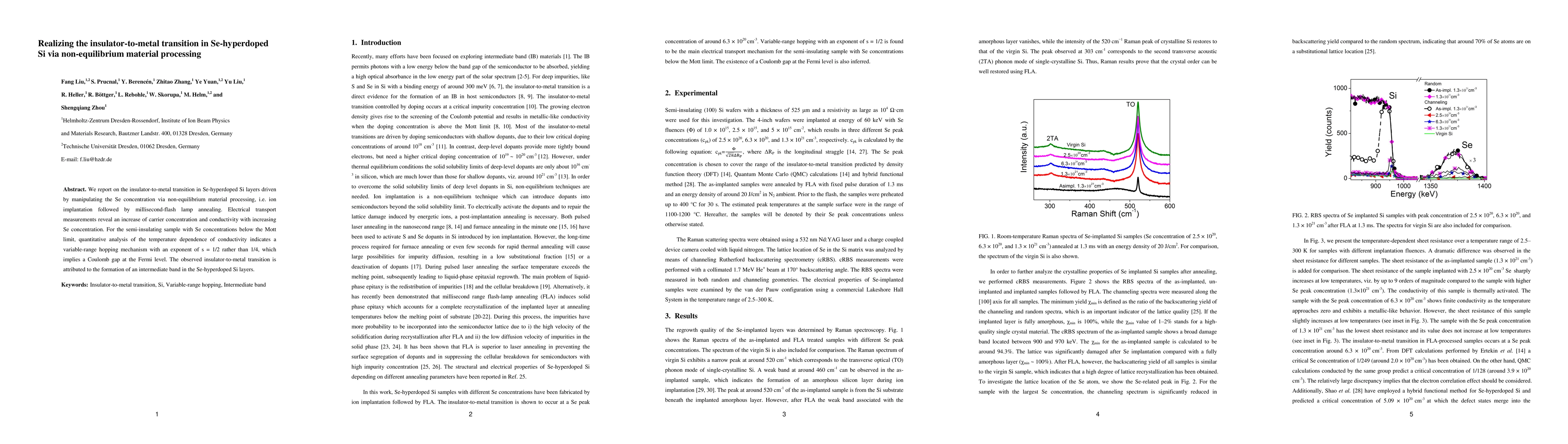 We report on the insulator-to-metal transition in Se-hyperdoped Si layers driven by manipulating the Se concentration via non-equilibrium material processing, i.e. ion implantation followed by millisecond-flash lamp annealing. Electrical transport measurements reveal an increase of carrier concentration and conductivity with increasing Se concentration. For the semi-insulating sample with Se concentrations below the Mott limit, quantitative analysis of the temperature dependence of conductivity indicates a variable-range hopping mechanism with an exponent of s = 1/2 rather than 1/4, which implies a Coulomb gap at the Fermi level. The observed insulator-to-metal transition is attributed to the formation of an intermediate band in the Se-hyperdoped Si layers.