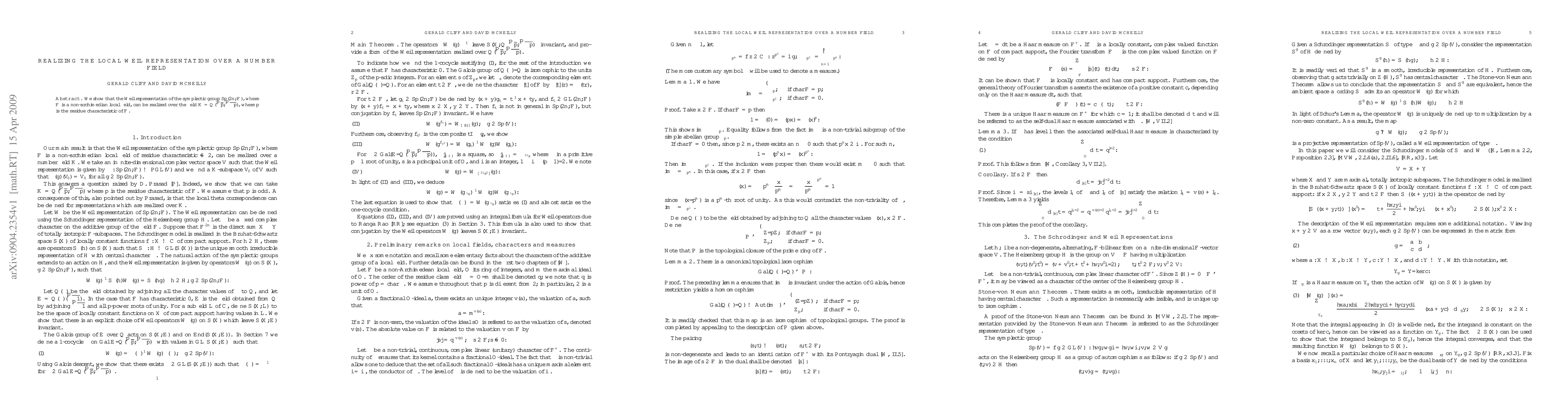This paper demonstrates the realization of the Weil representation of the symplectic group Sp(2n, F) over a number field formed by adjoining the square roots of p and -p, where F is a non-archimedian local field and p is its odd residue characteristic.
