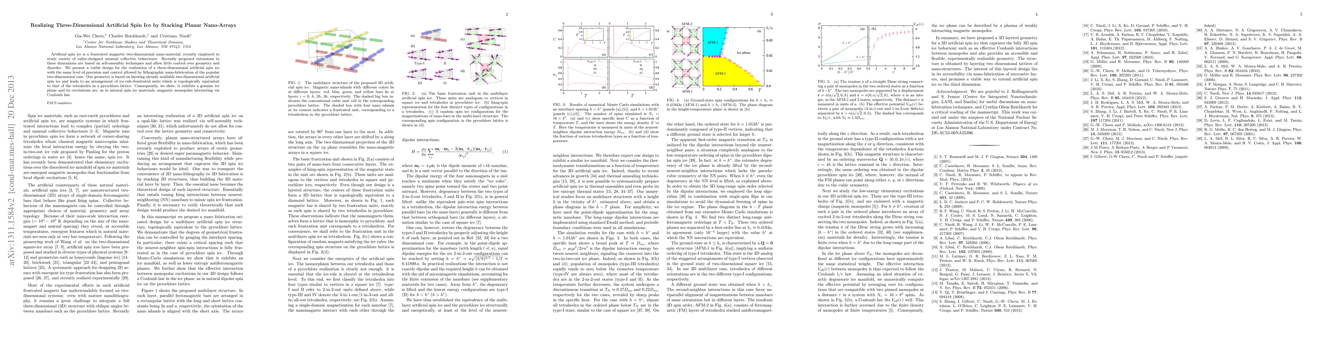 This paper presents a method for creating three-dimensional artificial spin ice by stacking precise two-dimensional nanoarrays, achieving the same level of control as in two-dimensional fabrication. This design allows for the formation of topologically equivalent tetrahedral units, resulting in a genuine ice phase with magnetic monopole excitations.