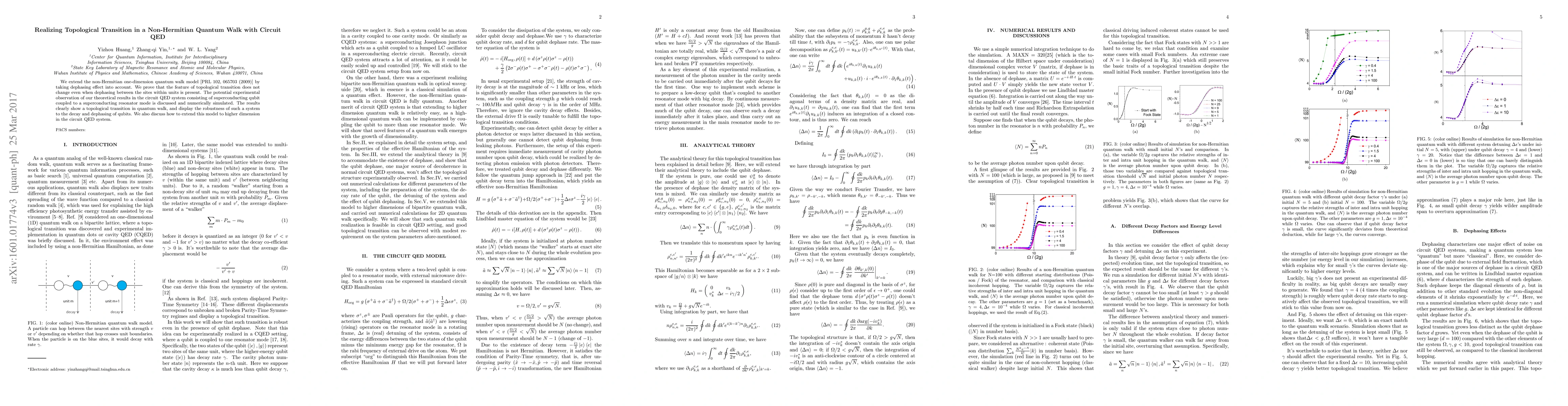 This paper investigates the topological transition in a non-Hermitian quantum walk model, demonstrating that it remains robust against dephasing effects. The study proposes and simulates a circuit QED system to observe these transitions, highlighting the system's resilience to qubit decay and dephasing.