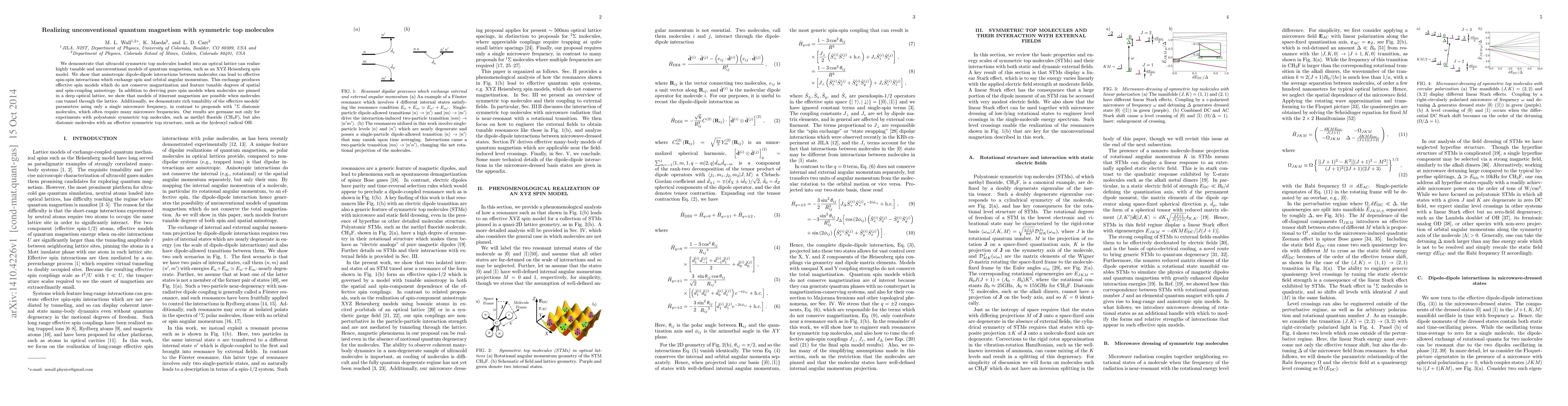 This study shows how ultracold symmetric top molecules in an optical lattice can realize unconventional quantum magnetism models, including XYZ Heisenberg spin models, enabled by tunable anisotropic dipole-dipole interactions. It highlights the tunability of effective spin models parameters using a single microwave frequency.