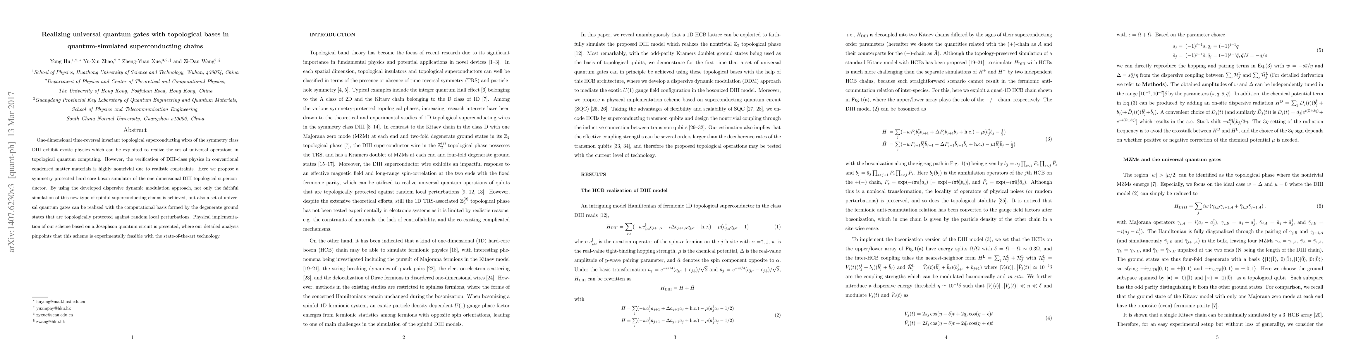 Researchers propose a way to simulate exotic quantum physics using superconducting chains, enabling universal quantum gates with topological bases. This breakthrough is feasible with current technology, paving the way for topological quantum computing.