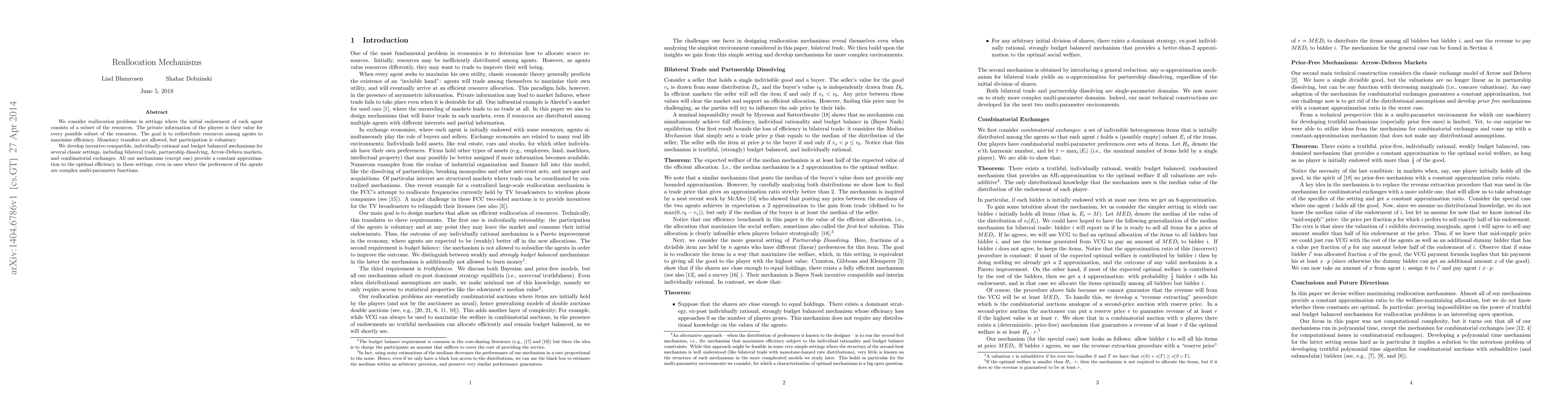 We consider reallocation problems in settings where the initial endowment of each agent consists of a subset of the resources. The private information of the players is their value for every possible subset of the resources. The goal is to redistribute resources among agents to maximize efficiency. Monetary transfers are allowed, but participation is voluntary. We develop incentive-compatible, individually-rational and budget balanced mechanisms for several classic settings, including bilateral trade, partnership dissolving, Arrow-Debreu markets, and combinatorial exchanges. All our mechanisms (except one) provide a constant approximation to the optimal efficiency in these settings, even in ones where the preferences of the agents are complex multi-parameter functions.