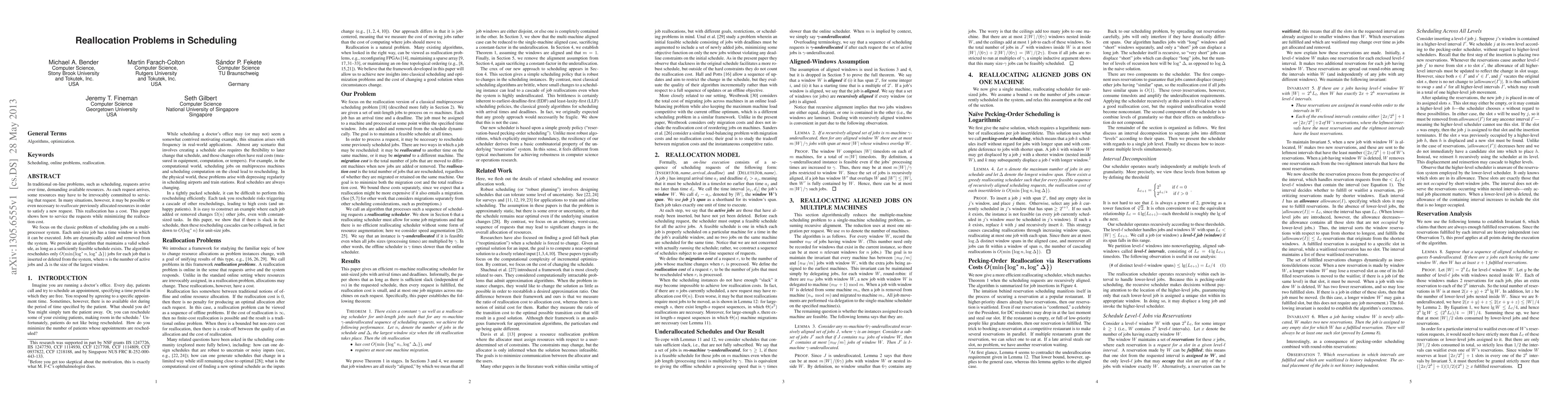 This paper presents an algorithm to minimize reallocation cost in scheduling jobs on a multiprocessor system while maintaining a valid schedule. The algorithm reschedules a limited number of jobs for each insertion or deletion, reducing the need for costly reallocations.