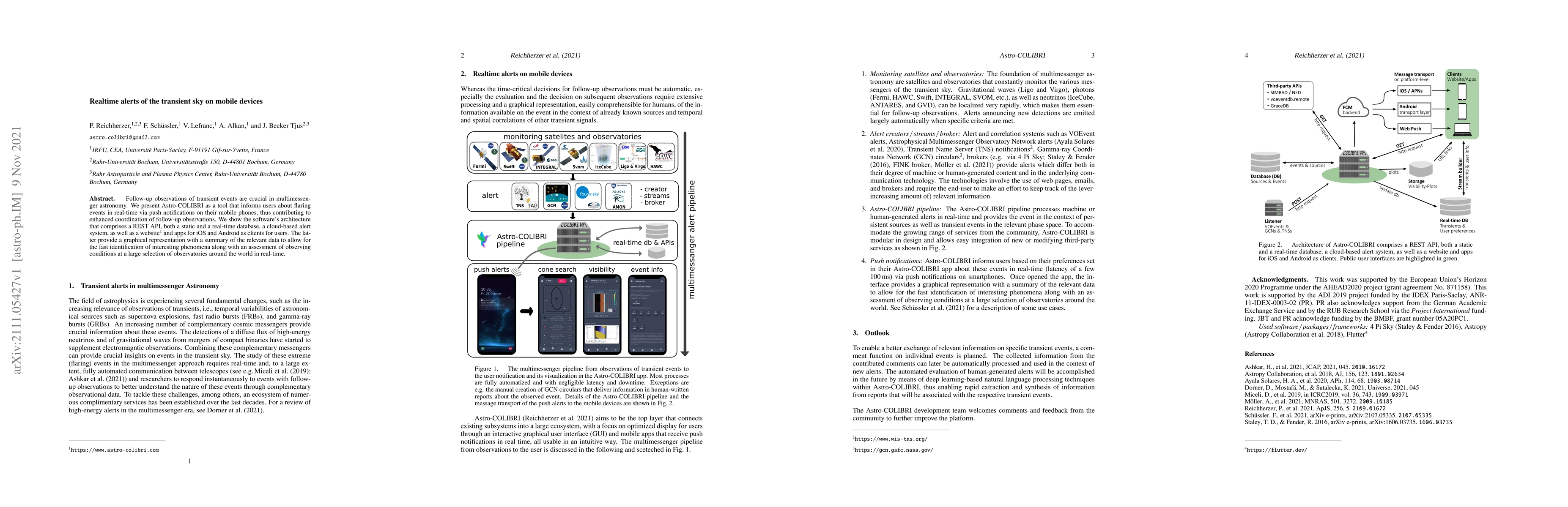 A new tool called Astro-COLIBRI provides real-time alerts on transient events to mobile devices, enhancing coordination of follow-up observations in multimessenger astronomy.