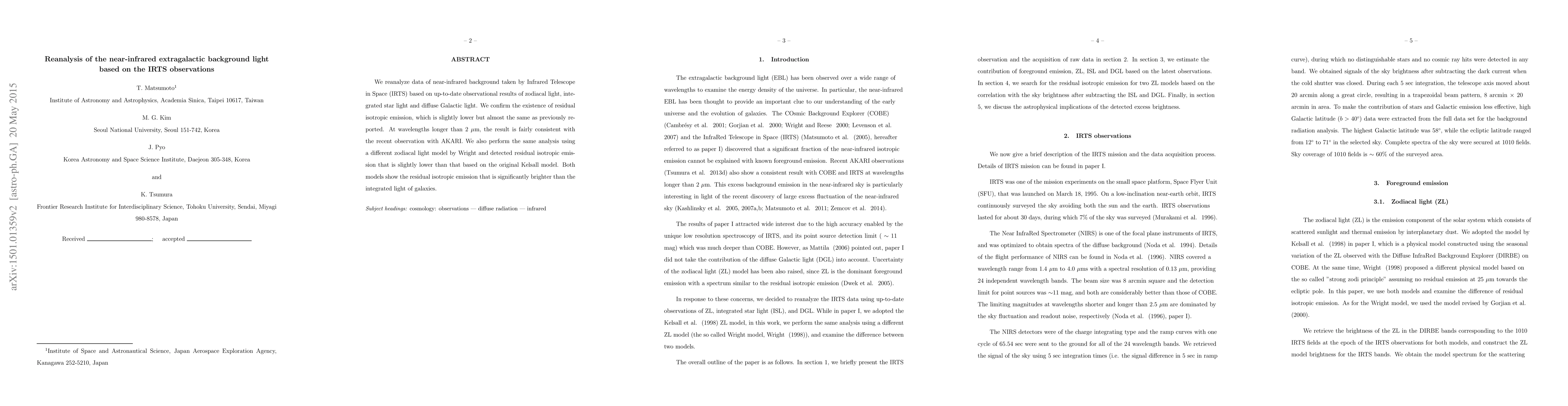 The research reanalyzes near-infrared extragalactic background light data from the Infrared Telescope in Space (IRTS) using updated observational results for zodiacal light, integrated star light, and diffuse Galactic light.