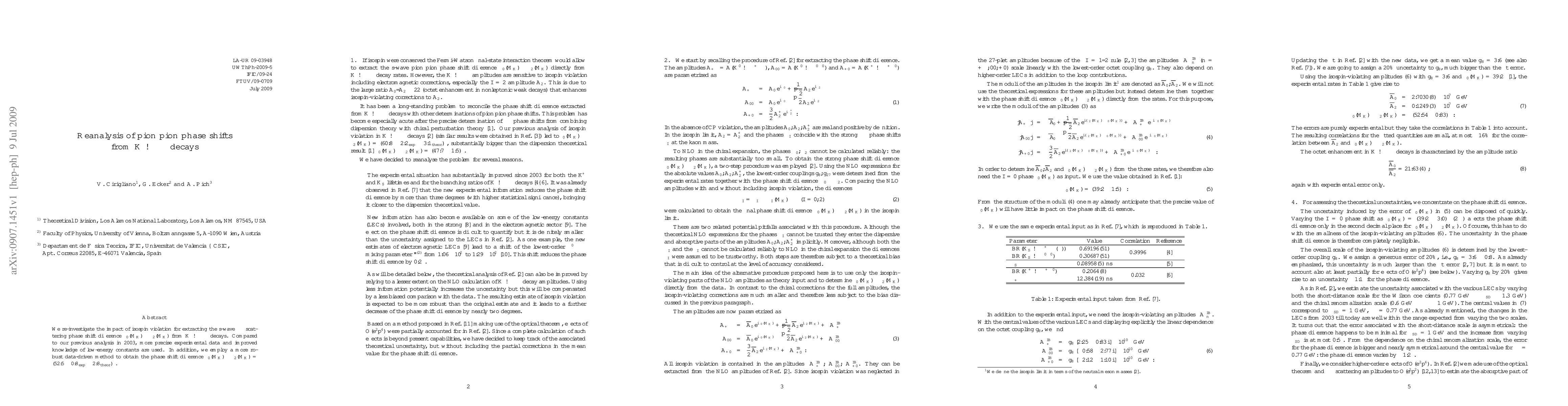 Researchers re-analyzed pion-pion phase shift data from K -> pi pi decays to improve accuracy, finding a phase shift difference of 52.5 degrees with an experimental error of 0.8 degrees.