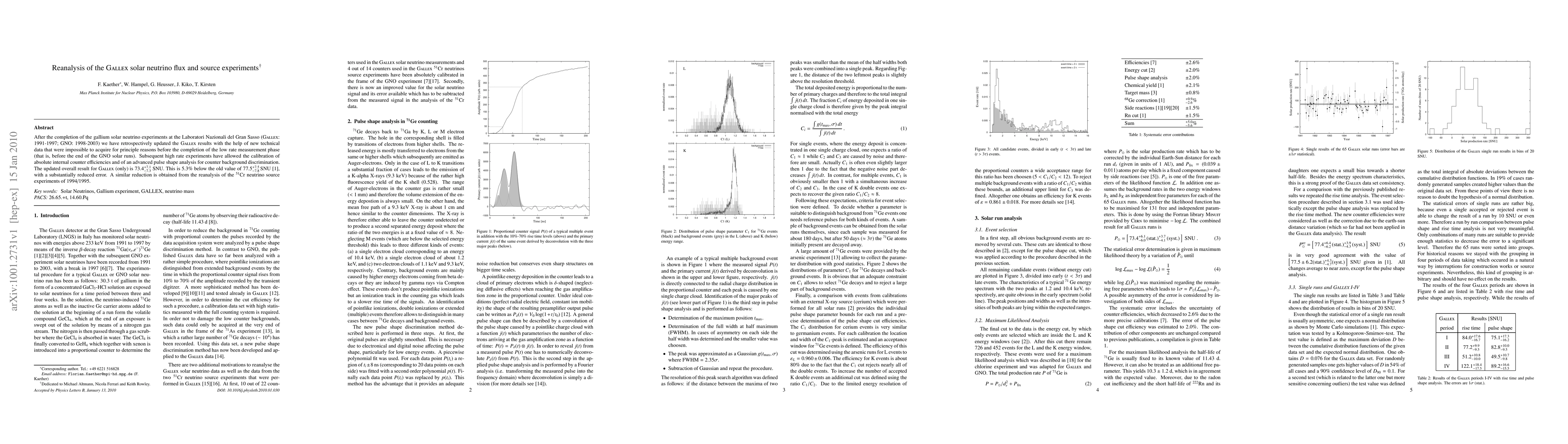 The GALLEX solar neutrino experiments have been reanalyzed using new technical data, resulting in an updated result of (73.4 ± 7.3) SNU, which is 5.3% lower and with a reduced error compared to the previous value of (77.5 ± 7.8) SNU.