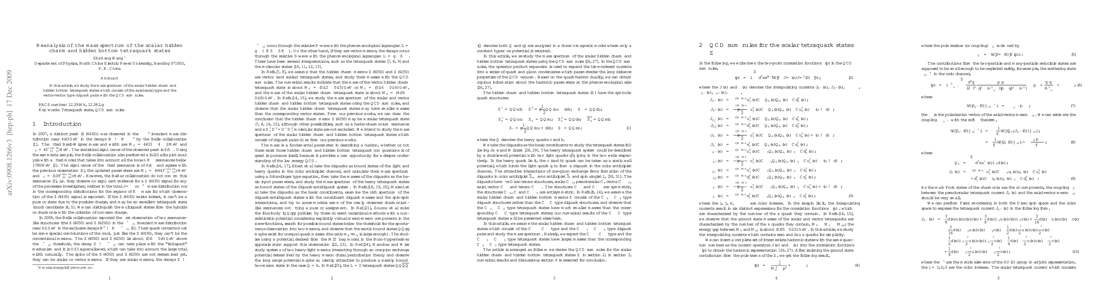 This paper reanalyzes the mass spectrum of scalar hidden charm and hidden bottom tetraquark states using QCD sum rules, focusing on axial-axial and vector-vector type diquark pairs. The study aims to refine the understanding of these exotic particles.