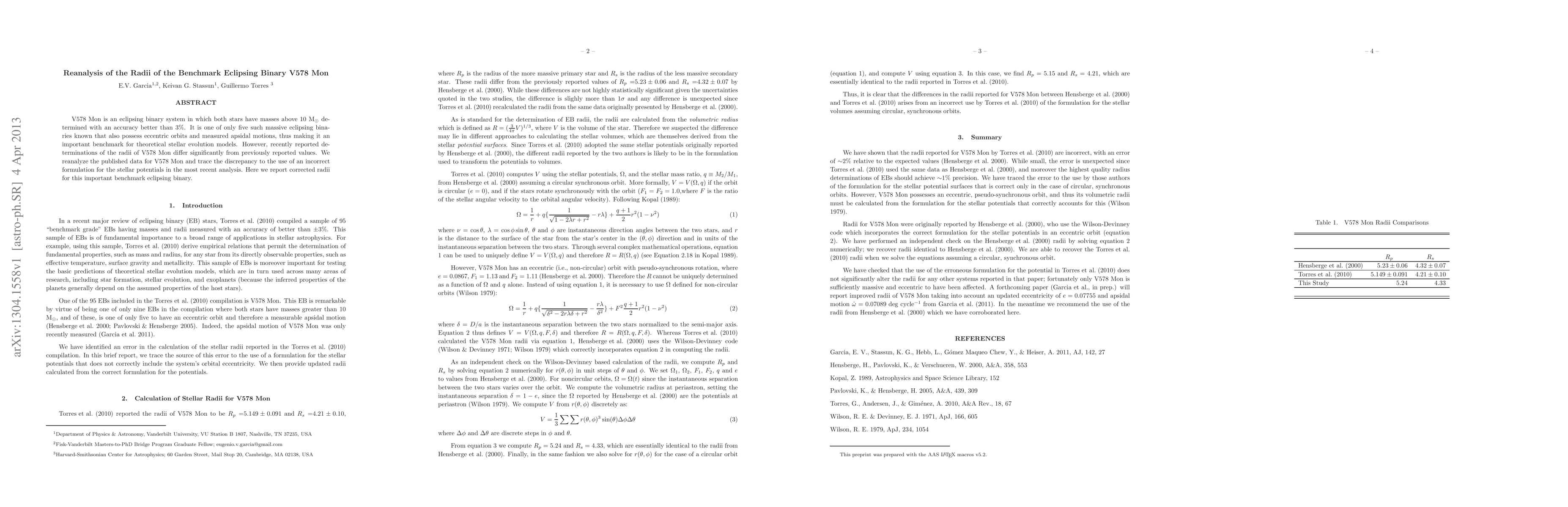 Researchers reanalyzed data for the eclipsing binary V578 Mon to correct discrepancies in previously reported radii measurements, resulting in new values that align with theoretical stellar evolution models.