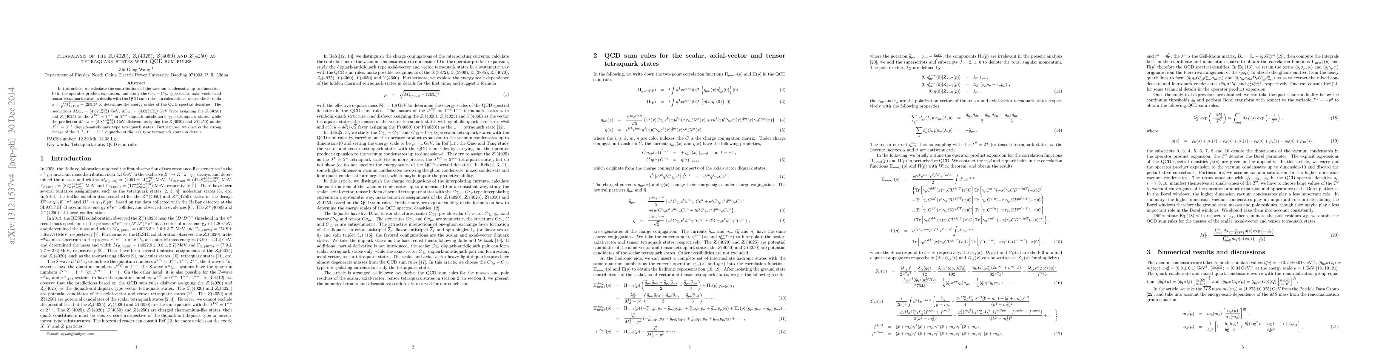 Researchers reanalyze four tetraquark states using QCD sum rules to predict their masses and determine their type, with the $Z_c(4020)$ and $Z_c(4025)$ favoring diquark-antidiquark configurations.