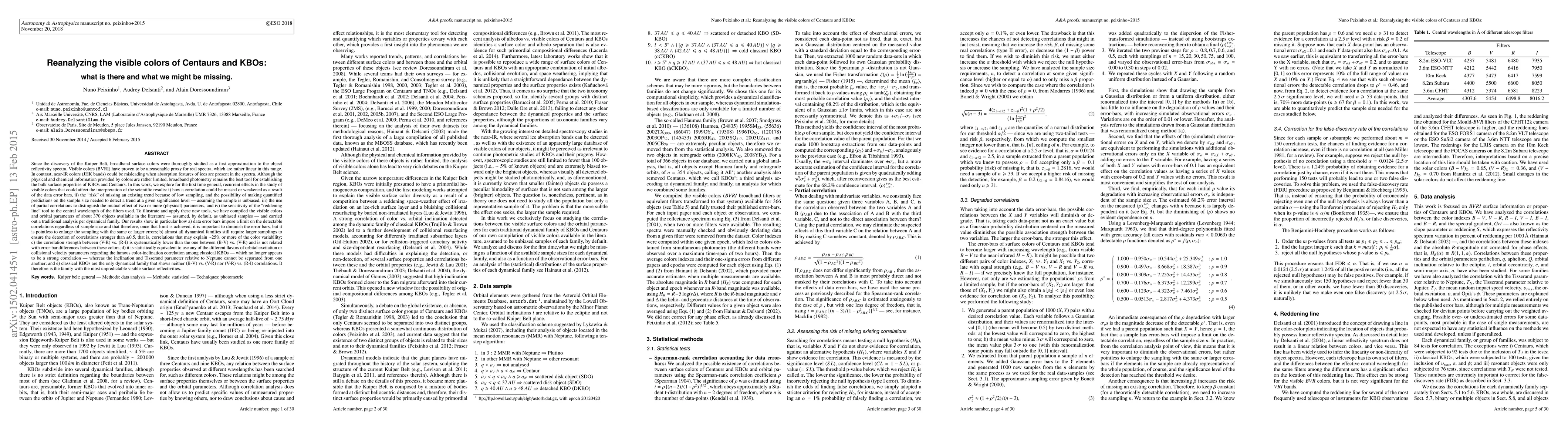 Visible colors (BVRI) are a reasonable proxy for real spectra of Centaurs and Kuiper Belt Objects, which are rather linear in this range. Colors provide limited information but remain the best tool to study the bulk surface properties. We explore recurrent effects in the study of visible colors: i) how a correlation could be missed or weakened as a result of the data error bars, ii) the "risk" of missing an existing trend because of low sampling, and the possibility of making quantified predictions on the sample size needed to detect a trend at a given significance level, iii) the use of partial correlations to distinguish the mutual effect of two or more parameters, and iv) the sensitivity of the "reddening line" tool to the central wavelength of the filters used. We have compiled the visible colors of about 370 objects available in the literature and carried out an analysis per dynamical family. Our results show how a) data error bars impose a limit on the detectable correlations regardless of sample size and that therefore, once that limit is achieved, it is important to diminish the error bars, but it is pointless to enlarge the sampling with the same or larger errors; b) almost all dynamical families still require larger samplings to ensure the detection of correlations stronger than 0.5; c) the correlation strength between (V-R) vs. (R-I) is systematically lower than the one between (B-V) vs. (V-R) and is not related with error-bar differences between these colors; d) it is statistically equivalent to use any of the different flavors of orbital excitation or collisional velocity parameters regarding the color-inclination correlation of classical KBOs whereas the inclination and Tisserand parameter relative to Neptune cannot be separated from one another; and e) classical KBOs are the only dynamical family that shows neither (B-V) vs. (V-R) nor (V-R) vs. (R-I) correlations.