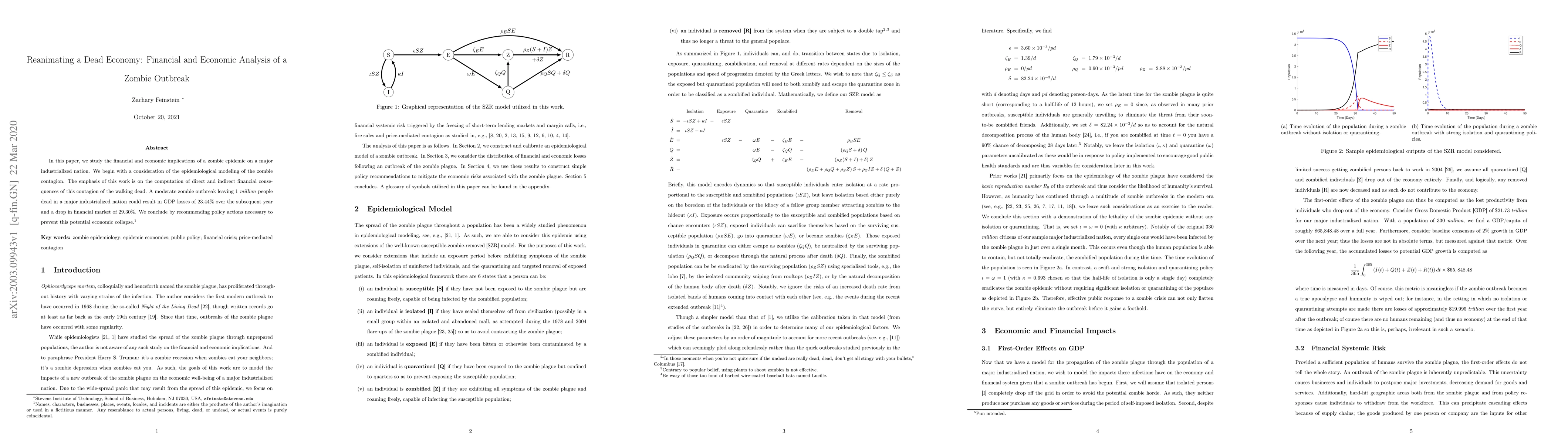 This paper examines the economic and financial impacts of a zombie outbreak in a major industrialized nation, estimating significant GDP losses and financial market declines. It concludes with policy recommendations to avert potential economic collapse.