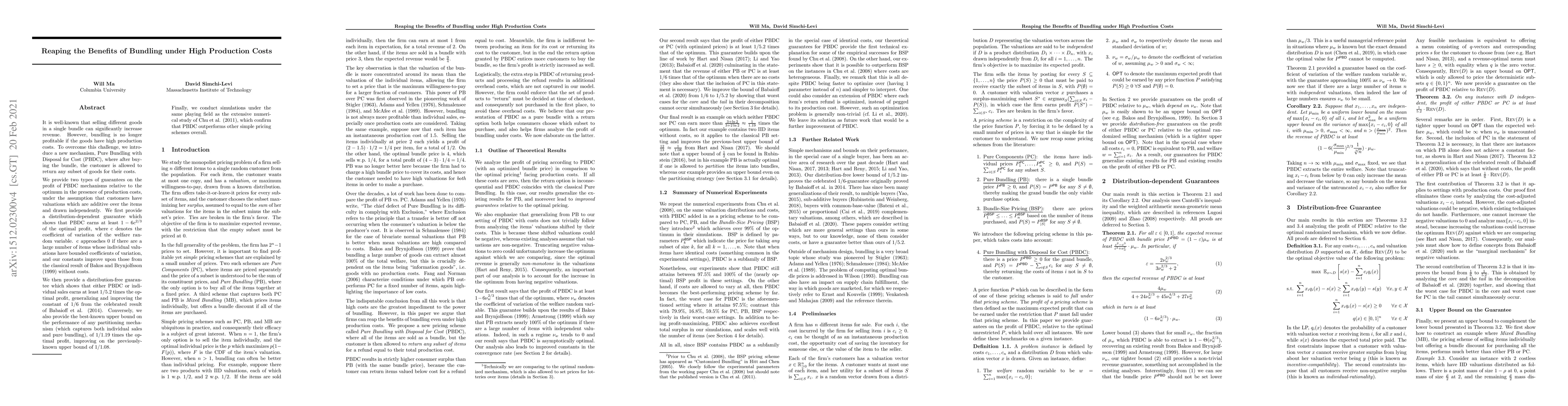 This paper introduces Pure Bundling with Disposal for Cost (PBDC) to enhance revenue from bundling despite high production costs. It provides distribution-dependent and distribution-free guarantees showing PBDC earns at least 1-6c^{2/3} and 1/5.2 times the optimal profit, respectively, and outperforms other pricing schemes in simulations.