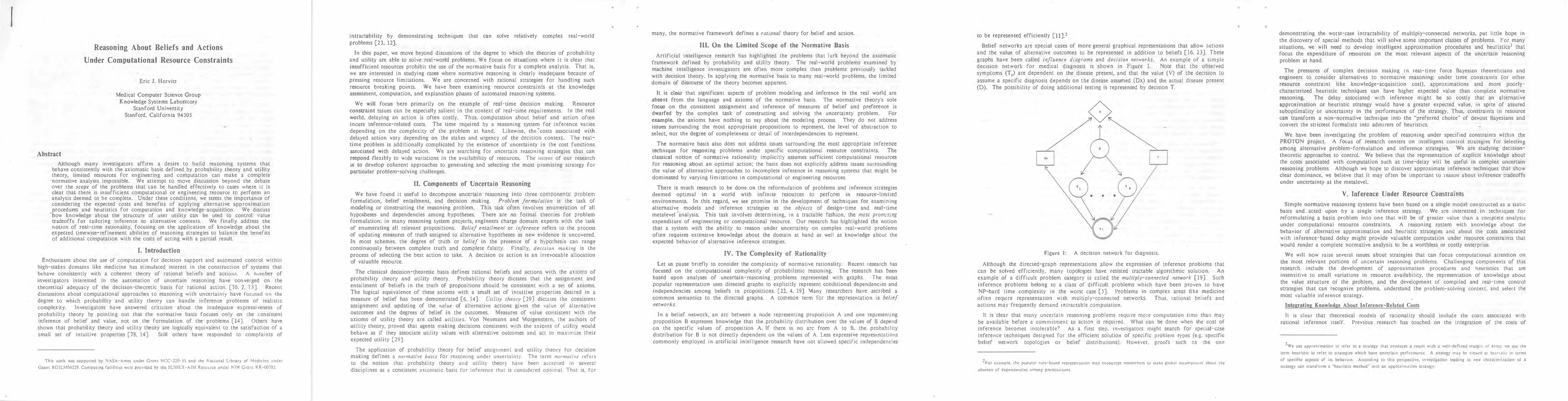 This paper explores reasoning systems under computational constraints, emphasizing the importance of balancing approximation procedures and heuristics against resource limitations. It discusses real-time rationality and the application of decision theory to manage the trade-offs between additional computation and the costs of acting on partial results.