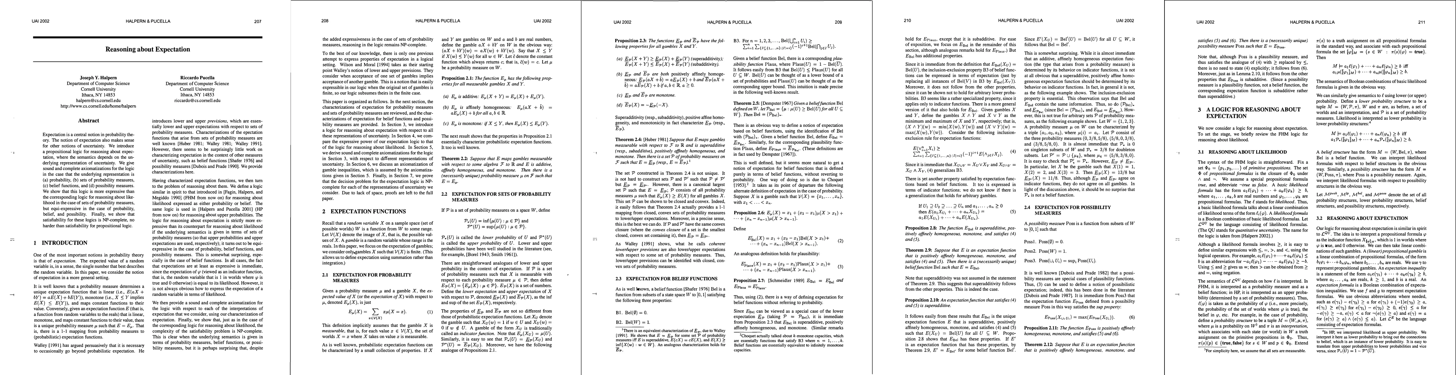 This paper introduces a propositional logic for reasoning about expectation across various uncertainty representations, providing sound and complete axiomatizations for probability, sets of probability measures, belief functions, and possibility measures. It demonstrates the logic's greater expressiveness for sets of probability measures compared to likelihood reasoning.