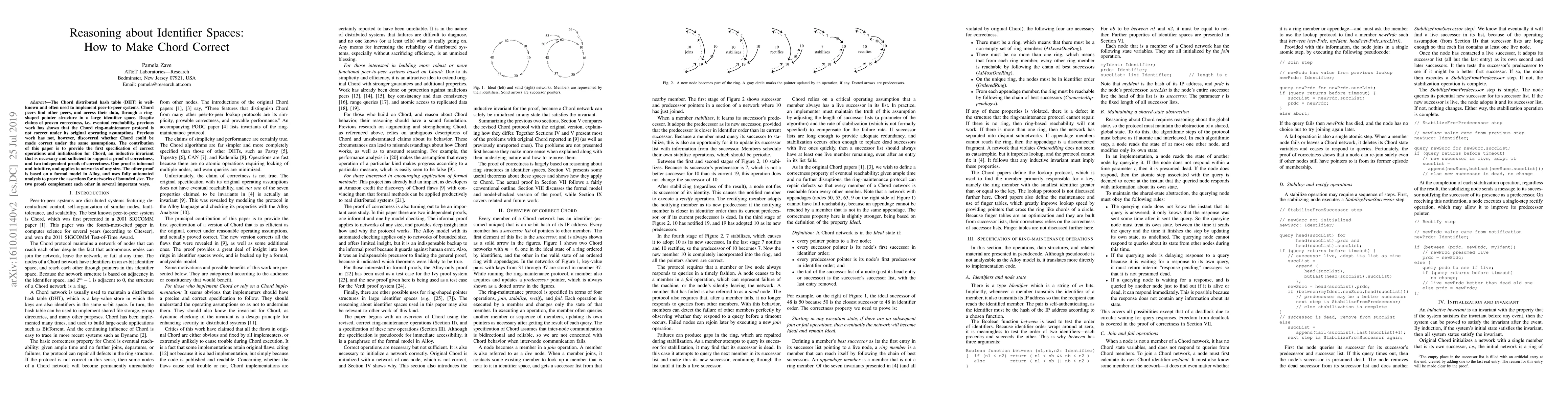 This paper provides a corrected specification for Chord's operations and initialization, along with two independent proofs of correctness that apply to networks of any size or bounded size.