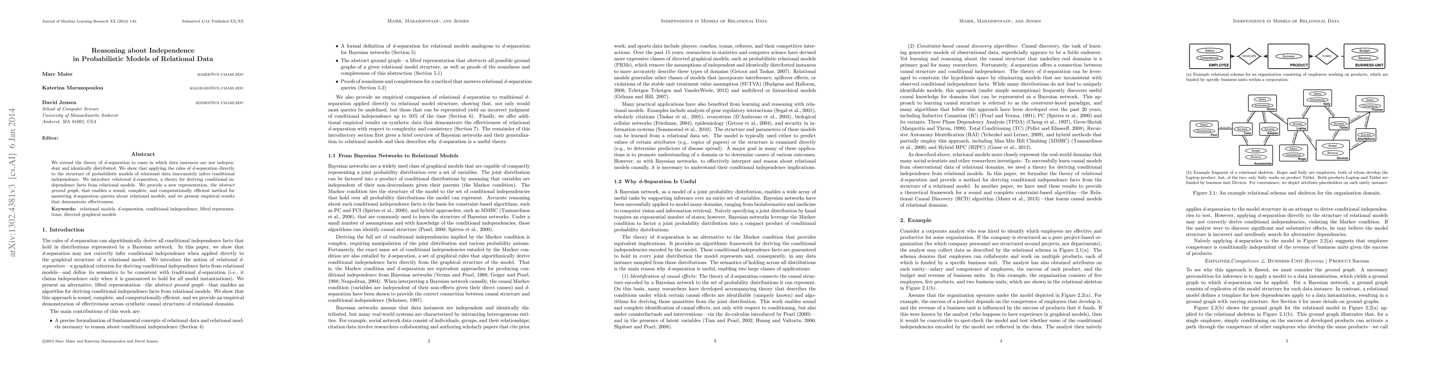 This paper introduces relational d-separation to accurately infer conditional independence in probabilistic models of relational data, correcting inaccuracies from applying traditional d-separation rules. It employs an abstract ground graph representation for efficient d-separation query processing and demonstrates its effectiveness empirically.