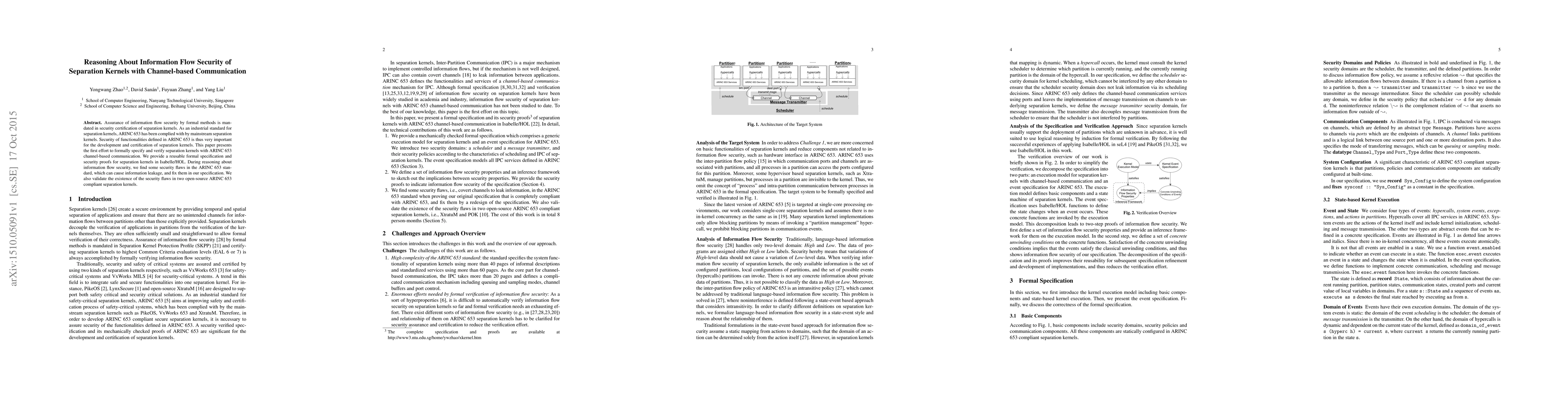 This paper formally specifies and verifies separation kernels compliant with ARINC 653 using Isabelle/HOL, identifying and fixing security flaws in the ARINC 653 standard that could lead to information leakage. It also validates these flaws in two open-source separation kernels.