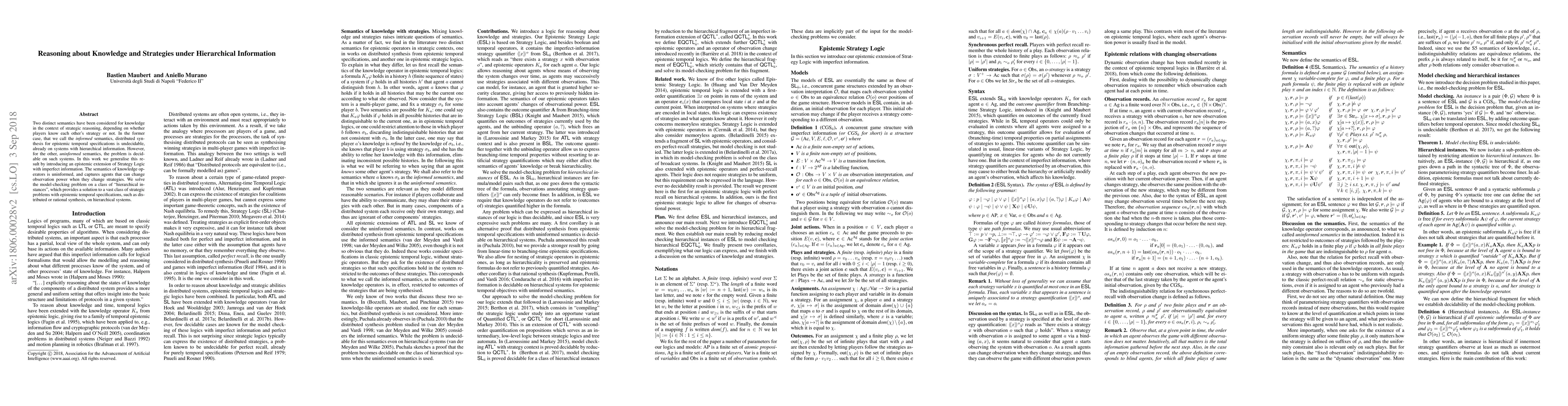 This paper extends Strategy Logic to include an uninformed semantics for knowledge, addressing strategic reasoning in hierarchical information systems. It solves the model-checking problem for a class of hierarchical instances, providing a decidable solution to strategic problems with epistemic temporal specifications.