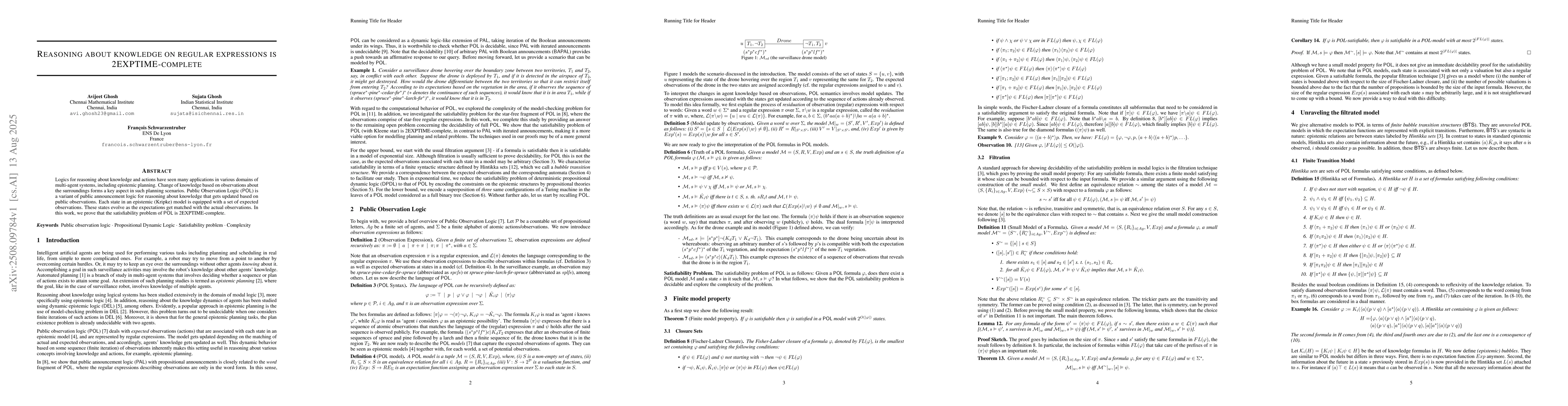 The paper presents a 2EXPTIME-completeness proof for the satisfiability problem of Public Observation Logic (POL) and introduces a translation from POL to DPDL, providing an algorithm for checking POL satisfiability.