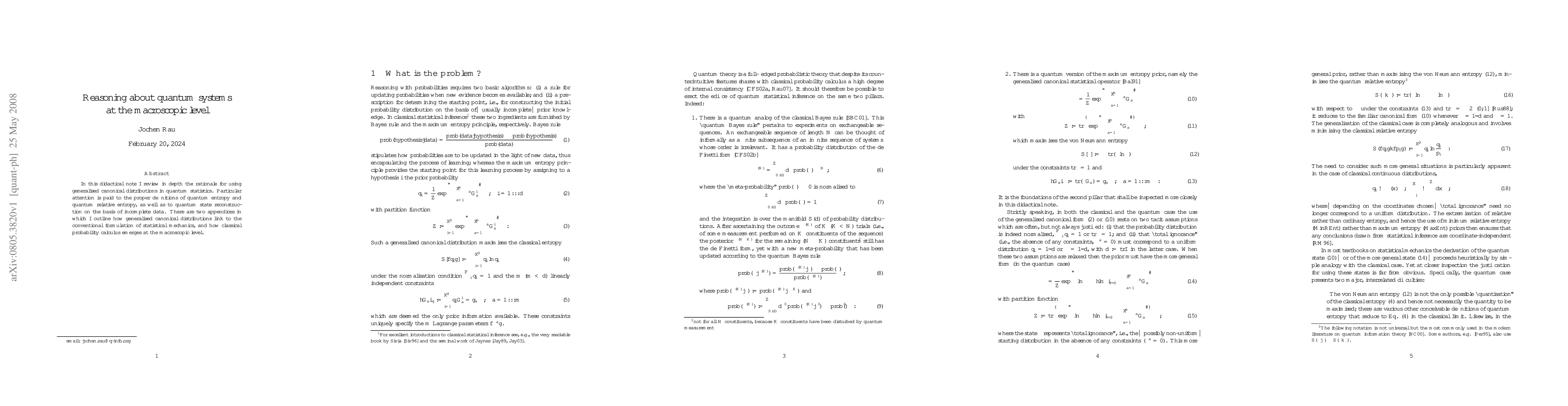 In this didactical note I review in depth the rationale for using generalised canonical distributions in quantum statistics. Particular attention is paid to the proper definitions of quantum entropy and quantum relative entropy, as well as to quantum state reconstruction on the basis of incomplete data. There are two appendices in which I outline how generalised canonical distributions link to the conventional formulation of statistical mechanics, and how classical probability calculus emerges at the macroscopic level.