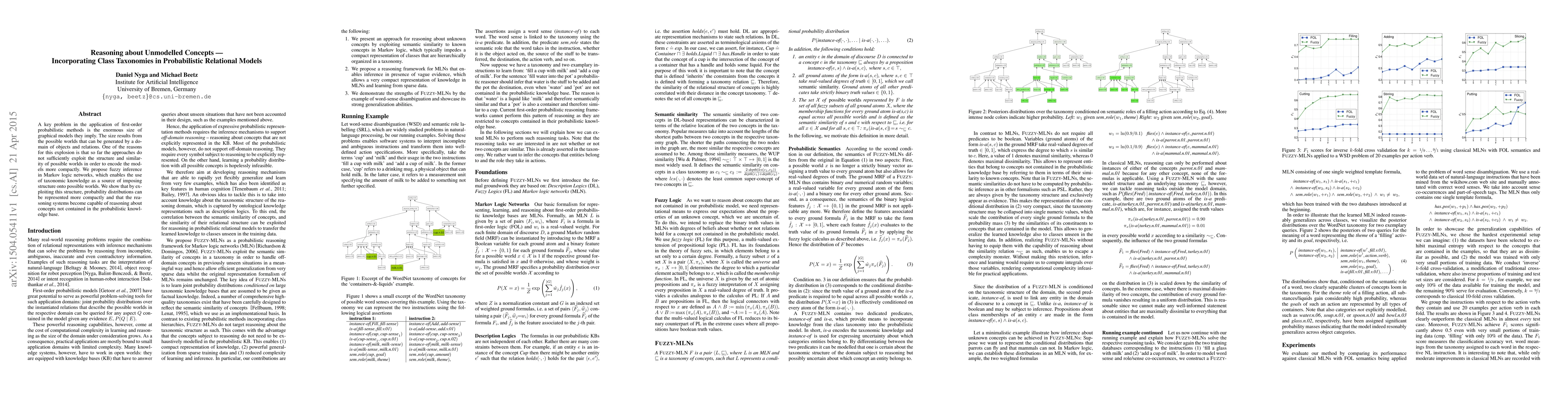 This paper proposes a method to incorporate class taxonomies into probabilistic relational models using fuzzy inference in Markov logic networks. This approach enables more compact representation of probability distributions and allows reasoning about unmodelled concepts by leveraging taxonomic knowledge.