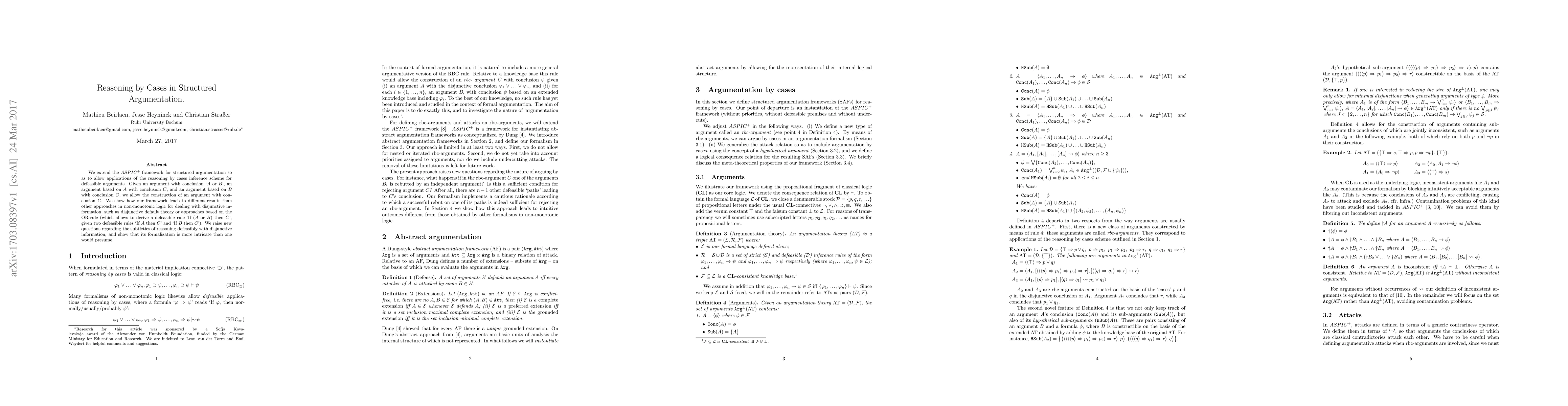 We extend the $ASPIC^+$ framework for structured argumentation so as to allow applications of the reasoning by cases inference scheme for defeasible arguments. Given an argument with conclusion `$A$ or $B$', an argument based on $A$ with conclusion $C$, and an argument based on $B$ with conclusion $C$, we allow the construction of an argument with conclusion $C$. We show how our framework leads to different results than other approaches in non-monotonic logic for dealing with disjunctive information, such as disjunctive default theory or approaches based on the OR-rule (which allows to derive a defeasible rule `If ($A$ or $B$) then $C$', given two defeasible rules `If $A$ then $C$' and `If $B$ then $C$'). We raise new questions regarding the subtleties of reasoning defeasibly with disjunctive information, and show that its formalization is more intricate than one would presume.