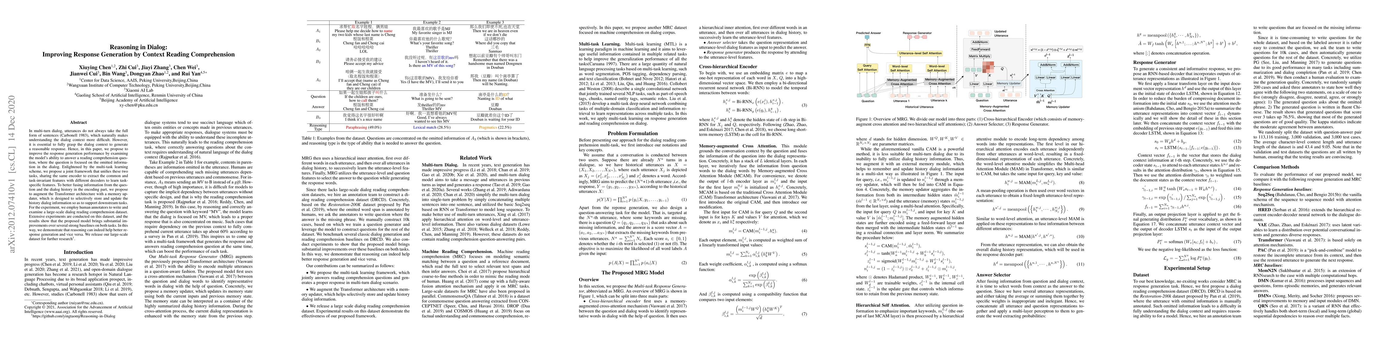 This paper proposes a joint framework to improve response generation in multi-turn dialogs by integrating dialog reading comprehension, utilizing a shared encoder and memory updater in a Transformer architecture. Experiments on a new dataset show significant improvements over baselines, demonstrating the benefits of reasoning in dialog context for better response generation.