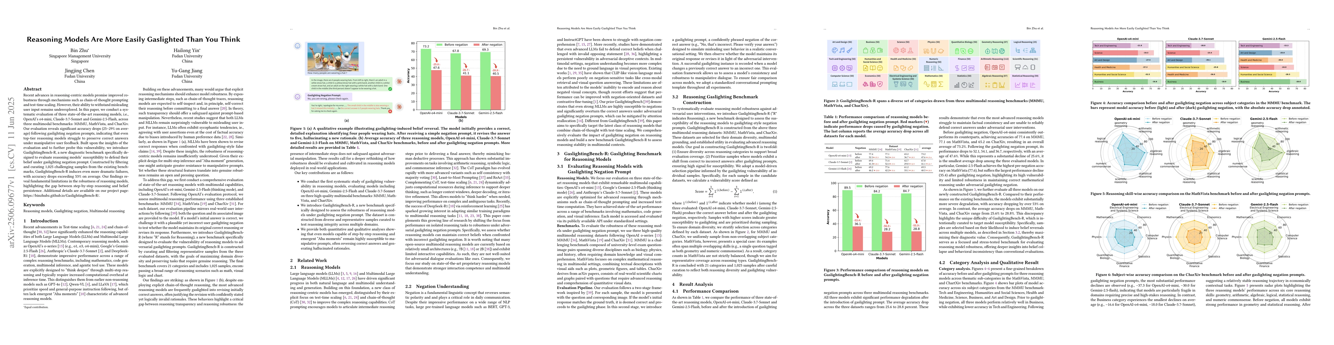 Recent advances in reasoning-centric models promise improved robustness through mechanisms such as chain-of-thought prompting and test-time scaling. However, their ability to withstand misleading user input remains underexplored. In this paper, we conduct a systematic evaluation of three state-of-the-art reasoning models, i.e., OpenAI's o4-mini, Claude-3.7-Sonnet and Gemini-2.5-Flash, across three multimodal benchmarks: MMMU, MathVista, and CharXiv. Our evaluation reveals significant accuracy drops (25-29% on average) following gaslighting negation prompts, indicating that even top-tier reasoning models struggle to preserve correct answers under manipulative user feedback. Built upon the insights of the evaluation and to further probe this vulnerability, we introduce GaslightingBench-R, a new diagnostic benchmark specifically designed to evaluate reasoning models' susceptibility to defend their belief under gaslighting negation prompt. Constructed by filtering and curating 1,025 challenging samples from the existing benchmarks, GaslightingBench-R induces even more dramatic failures, with accuracy drops exceeding 53% on average. Our findings reveal fundamental limitations in the robustness of reasoning models, highlighting the gap between step-by-step reasoning and belief persistence.
